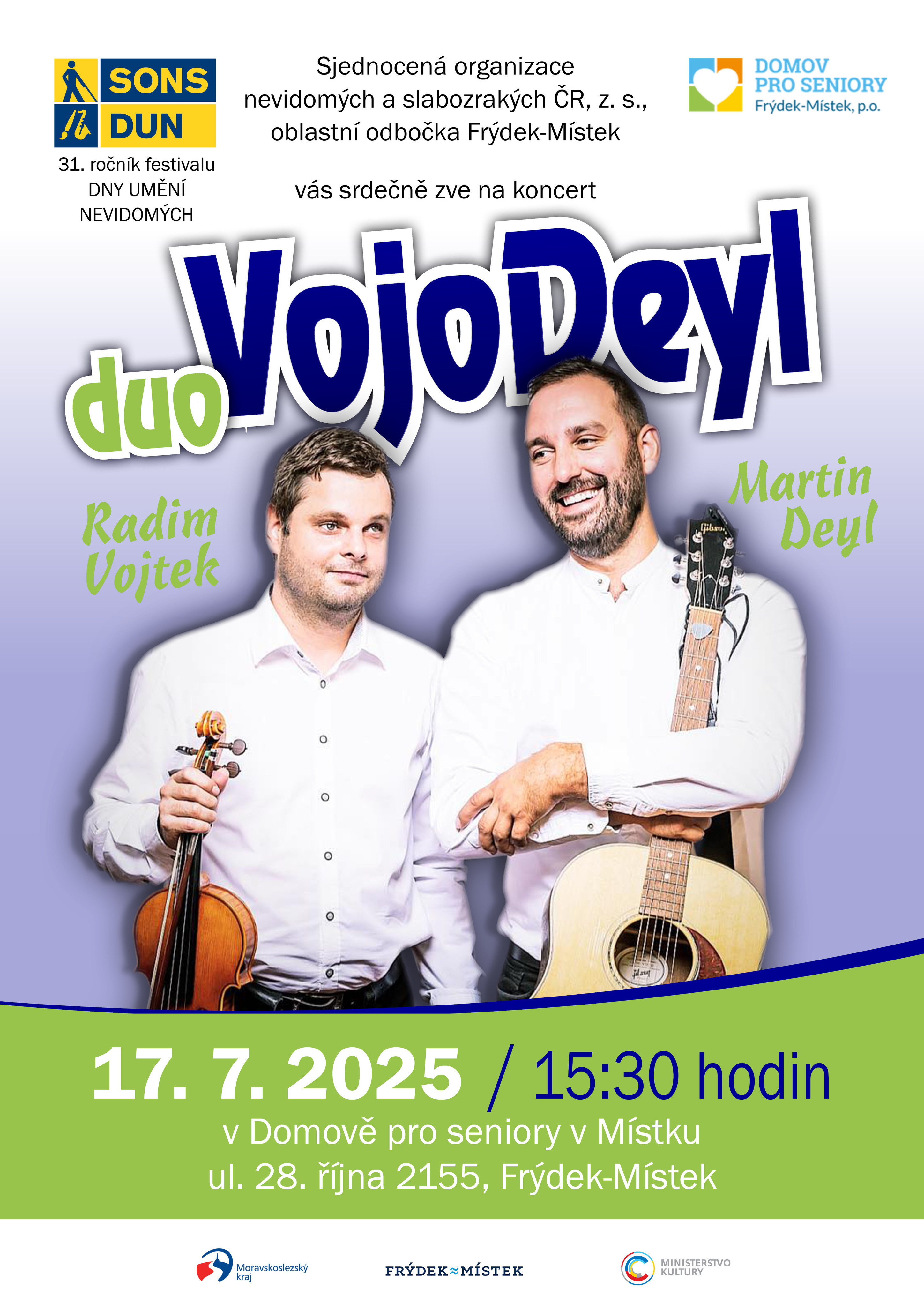 Zveme Vás na koncert Dua VojoDeyl, který se koná v rámci 31. ročníku festivalu Dny umění nevidomých.