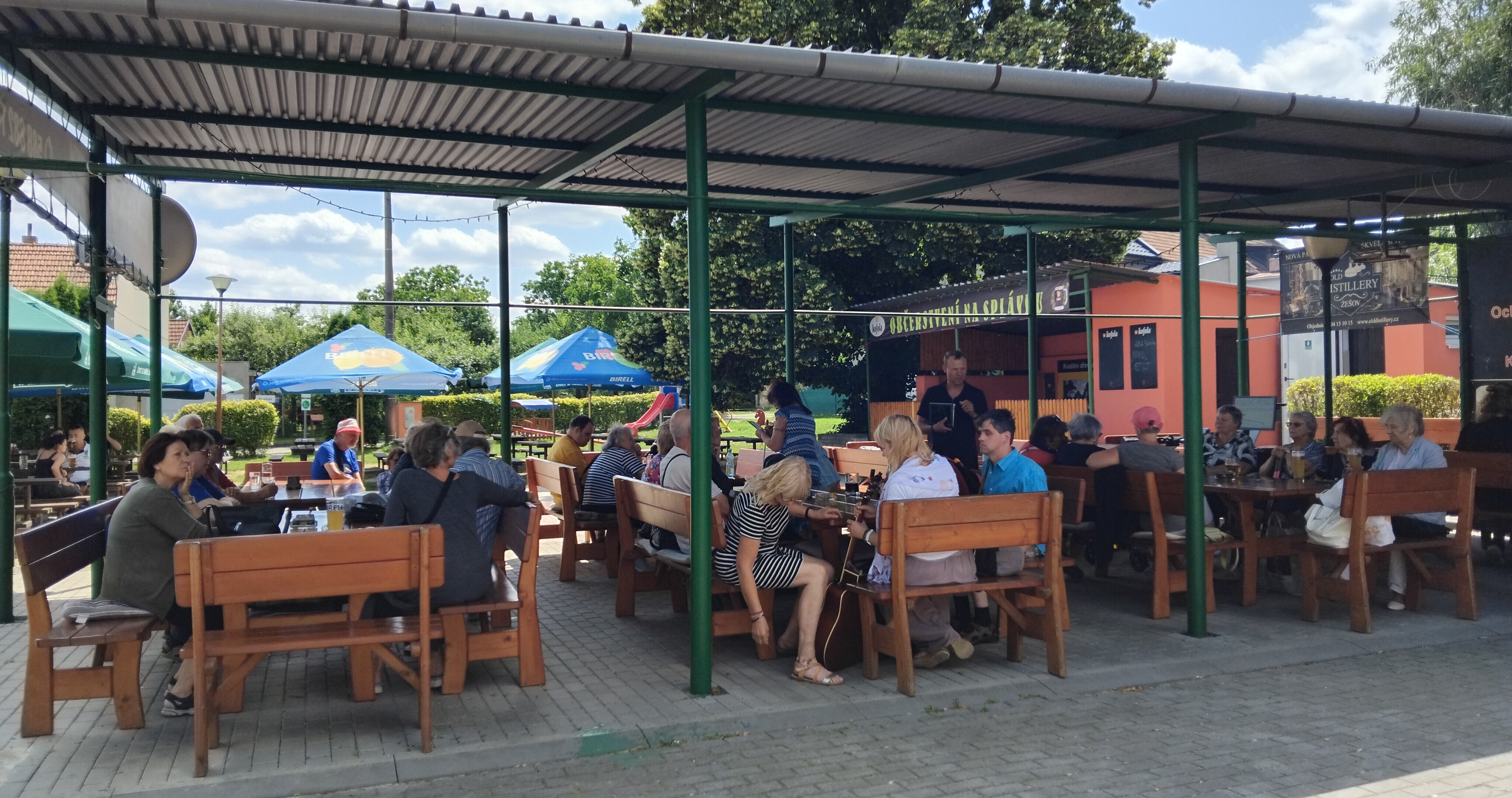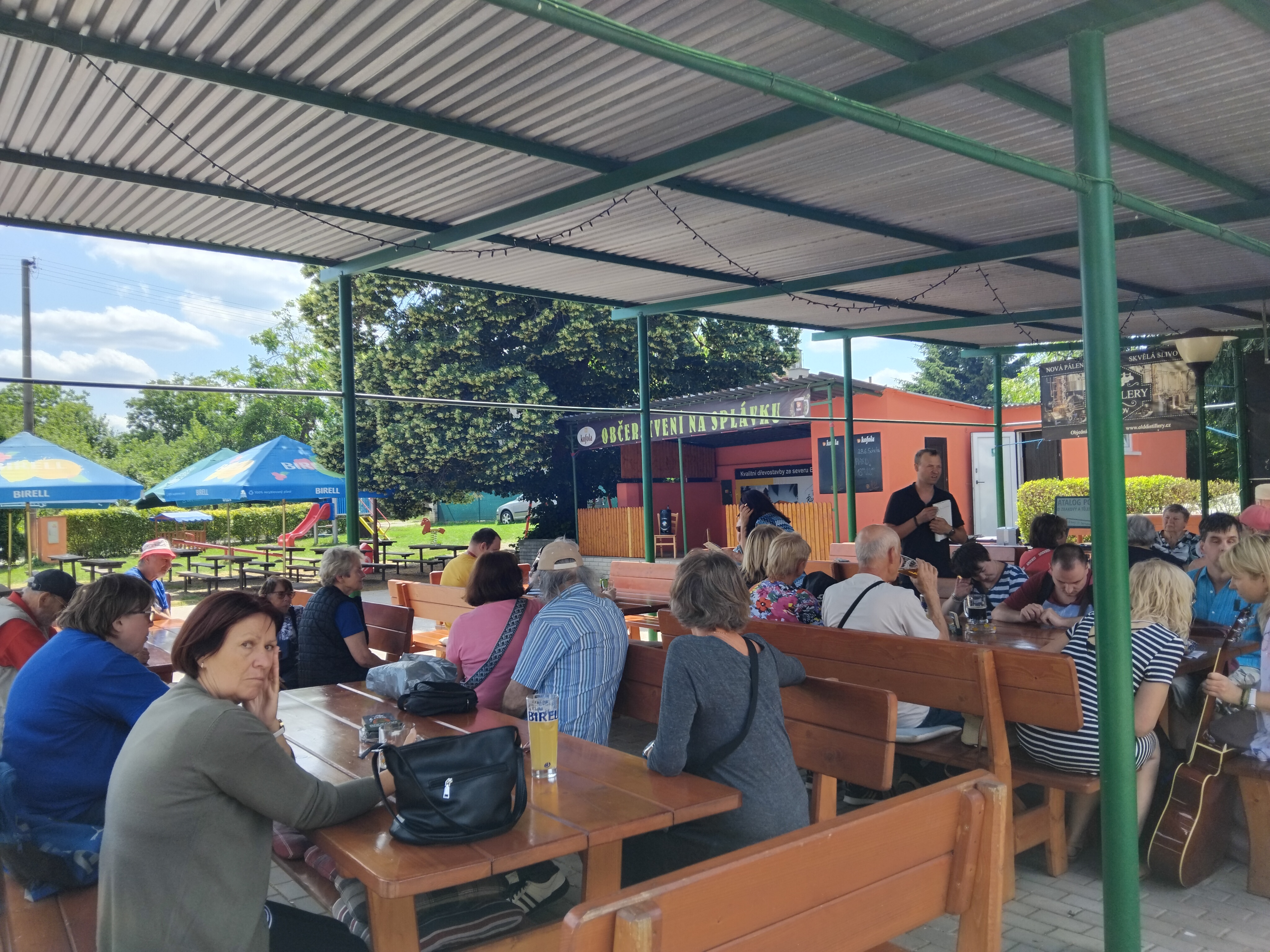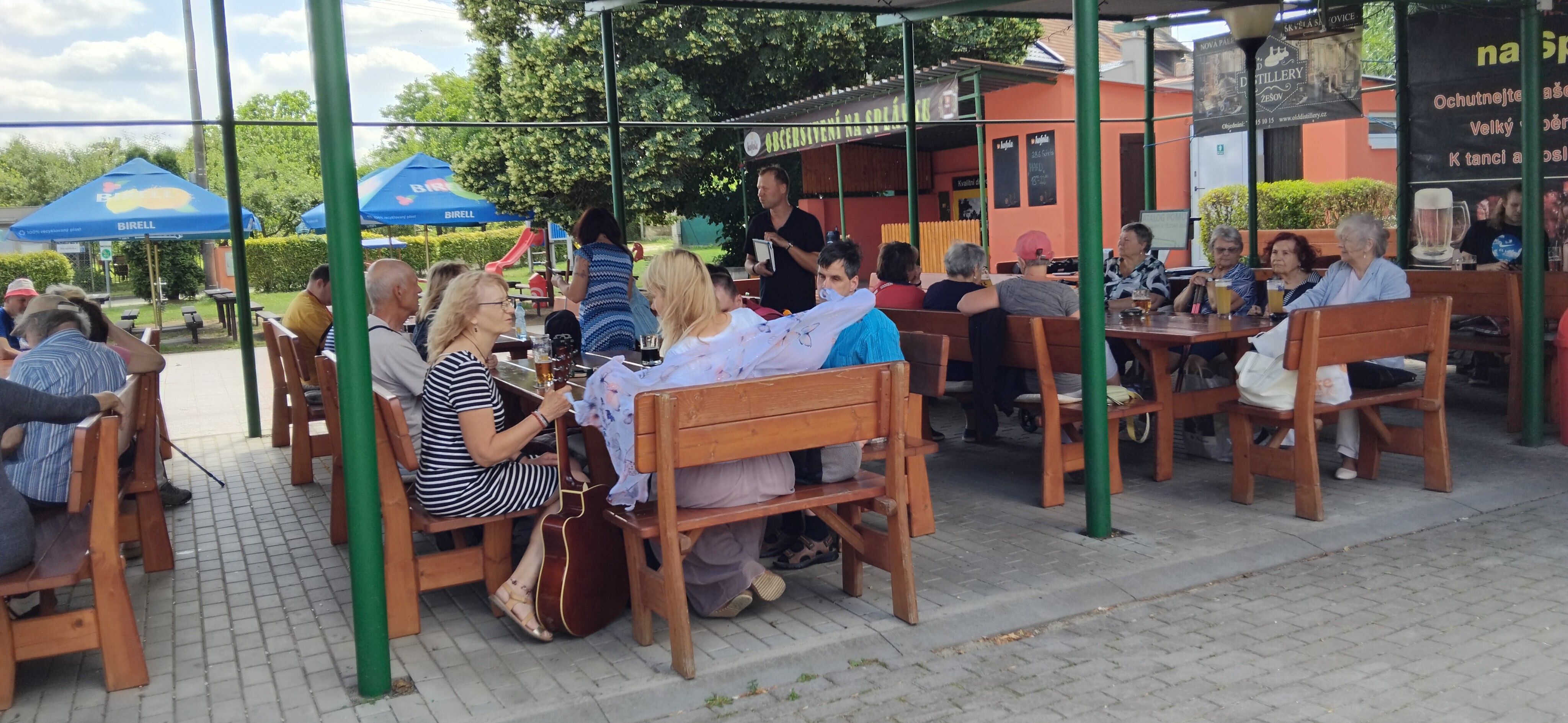 Tato skvělá kulturní akce se konala u kiosku Na Splávku v Domamyslicích. Již od samotného zahájení panovala skvělá a uvolněná nálada. Nevidomý skvělý zpěvák a člen naší organizace, Jakub Vevera, všem přítomným za doprovodného zpěvu a hry na kytaru úžasné Lidušky Veselé poskytl krásný hudební zážitek.