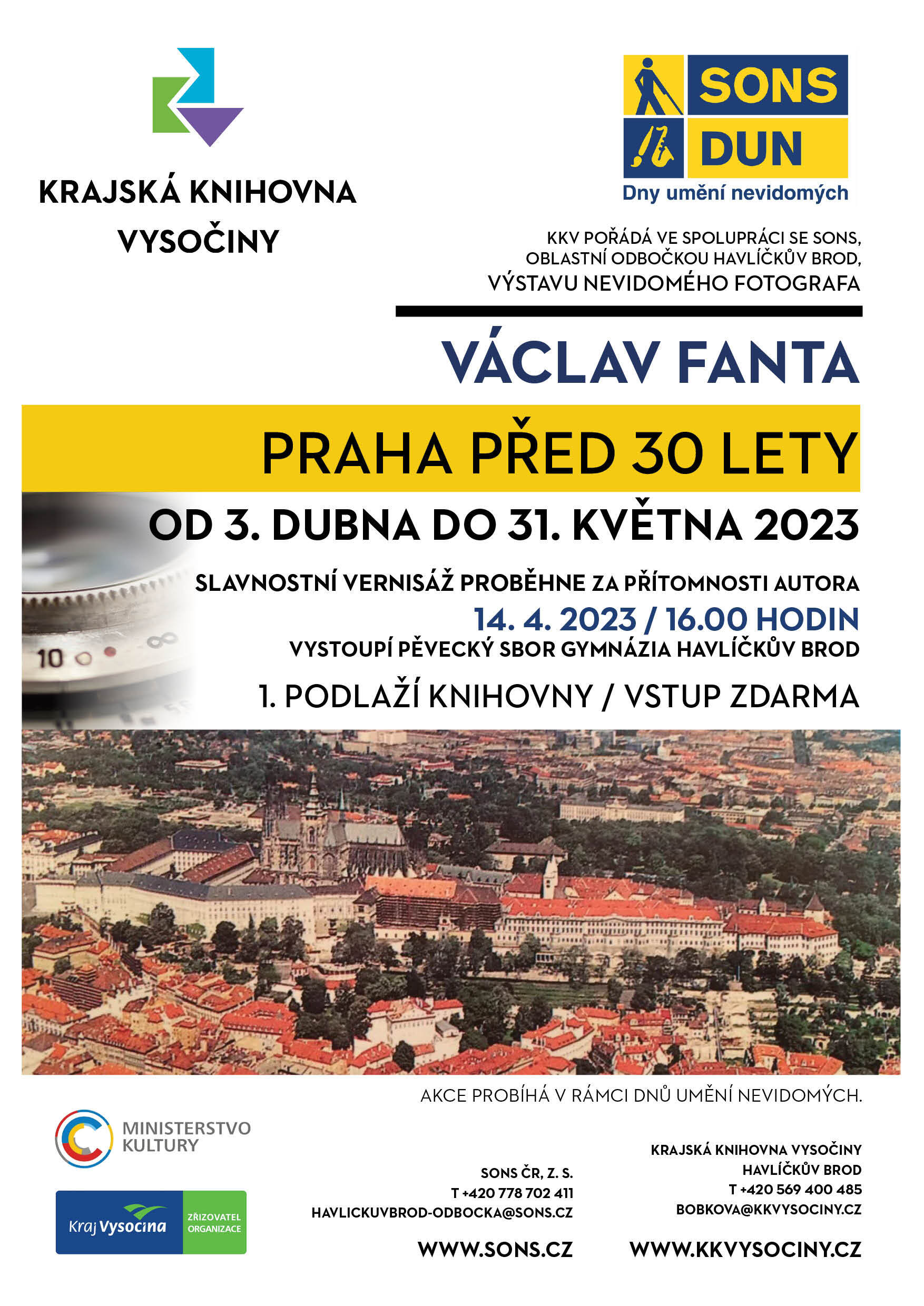 Vernisáž výstavy proběhne v pátek 14. 4. 2023 od 16 hodin za přítomnosti autora - pana Václava Fanty. Na vernisáži vystoupí pěvecký sbor Gymnázia Havlíčkův Brod.