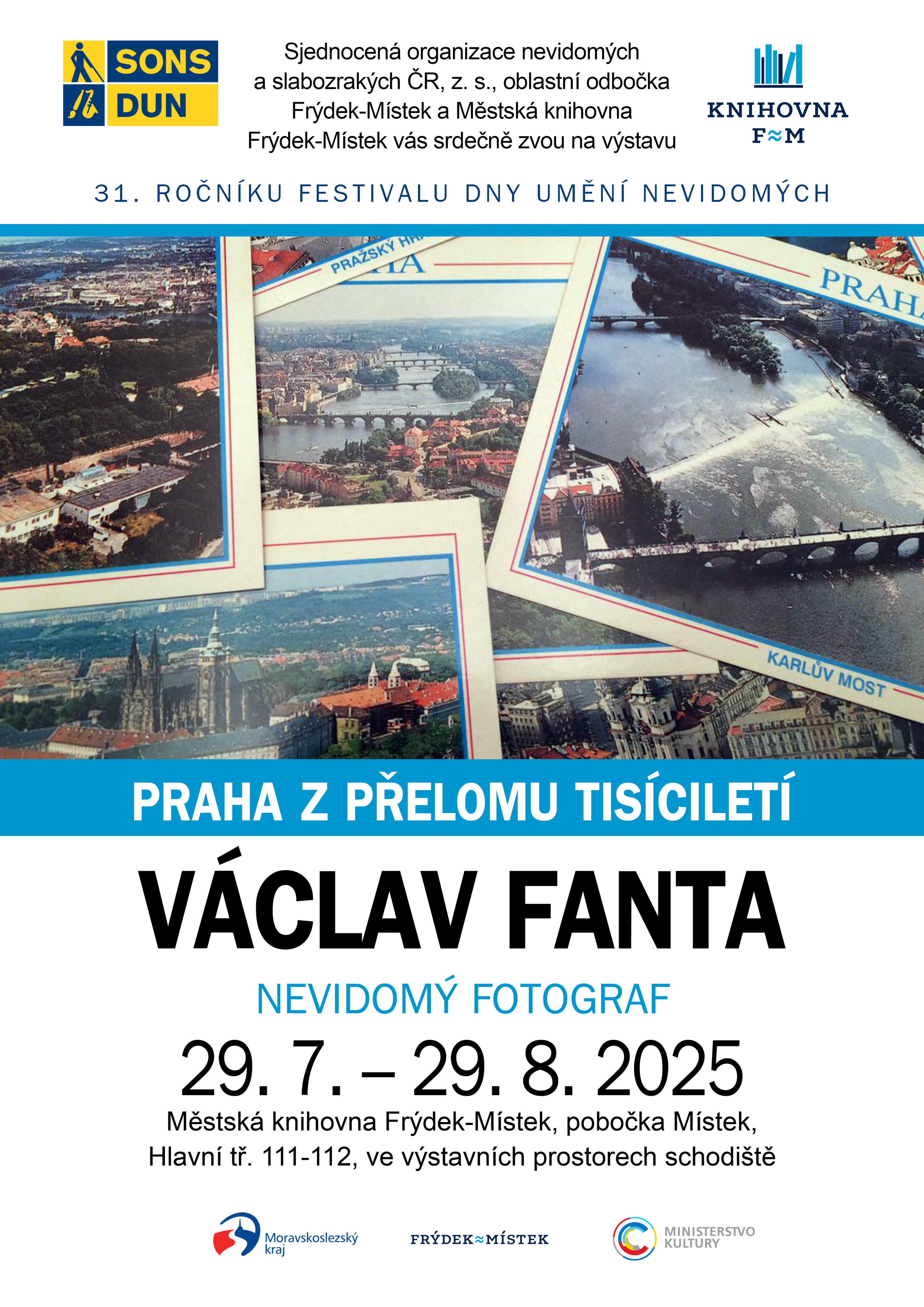 Zveme Vás na výstavu fotografií nevidomého fotografa Václava Fanty s názvem "Praha na pařelomu tisíciletí", která se koná v rámci 31. ročníku festivalu Dny umění nevidomých.