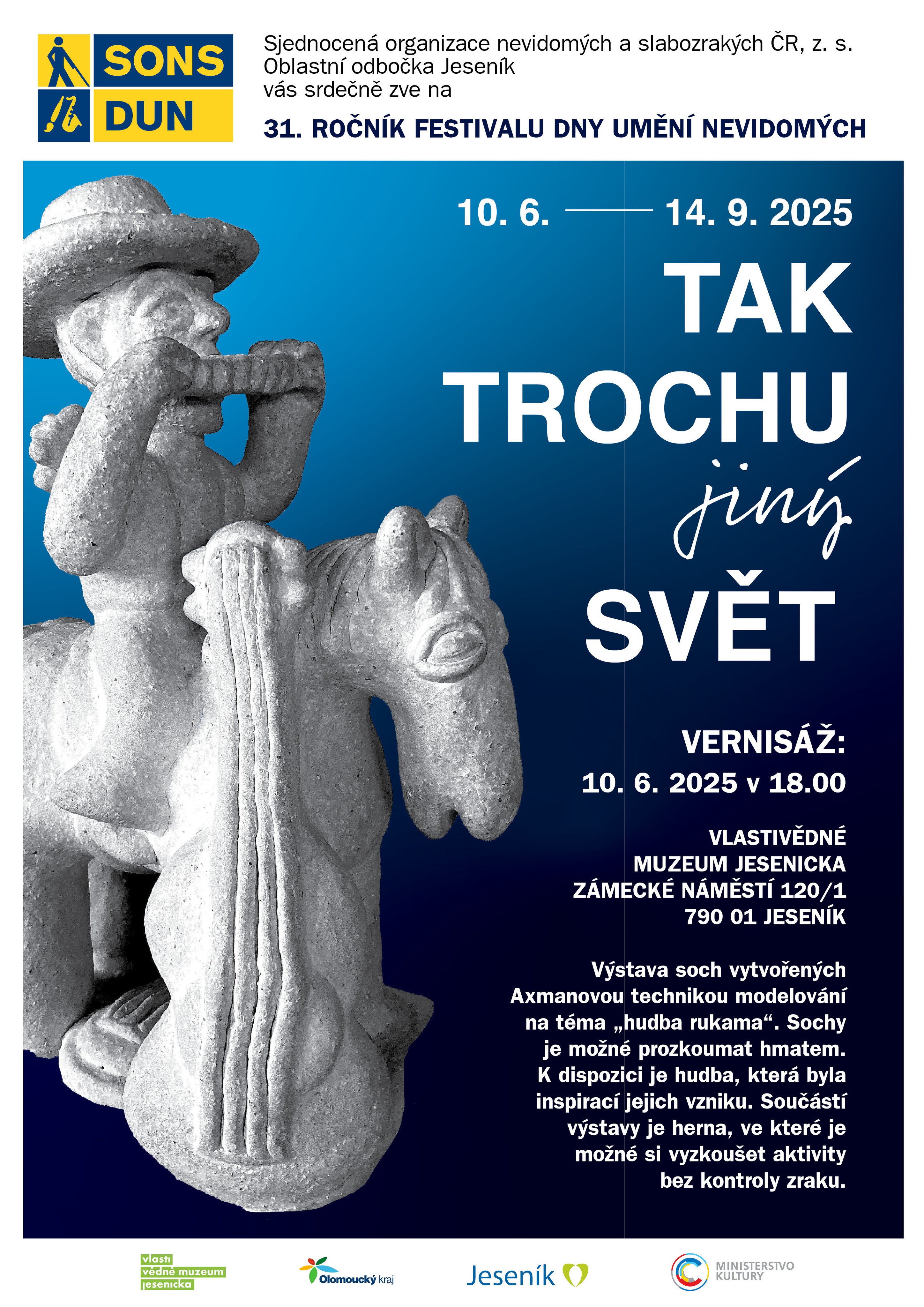 Zveme Vás na výstavu soch vytvořených Axmanovou technikou modelování na téma „hudba rukama“, která se koná v rámci 31. ročníku festivalu Dny umění nevidomých.