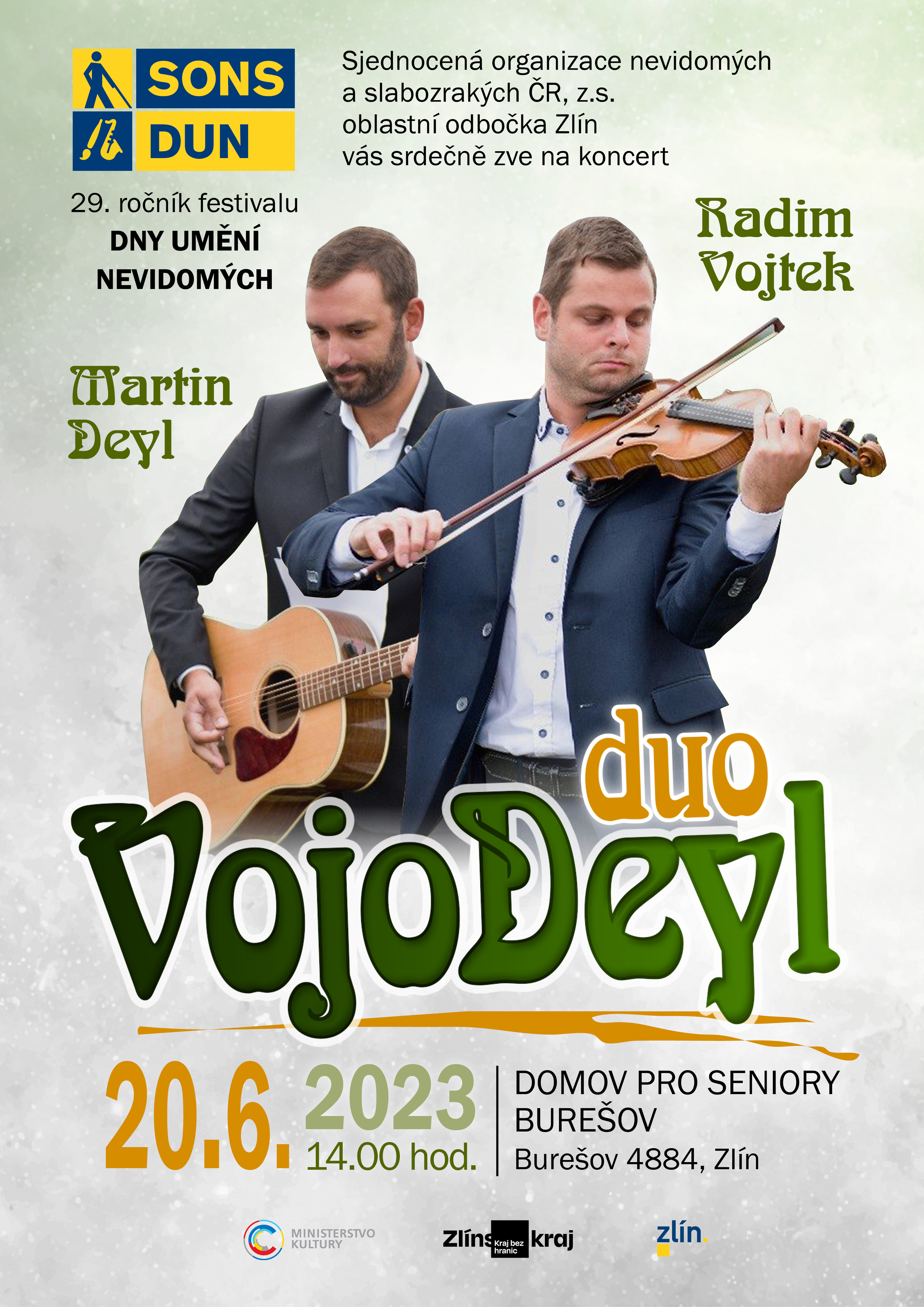 Zveme Vás na vystoupení dua VojoDeyl, které se koná v rámci 29. ročníku festivalu Dny umění nevidomých na Moravě.