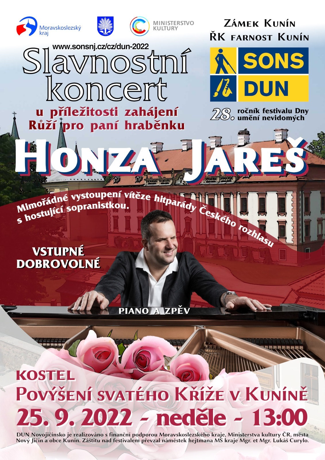 Zveme Vás na koncert Honzy Jareše, který proběhne u příležitosti zahájení Růží pro paní hraběnku. Koncert proběhne také v rámci 28. ročníku festivalu Dny umění nevidomých.