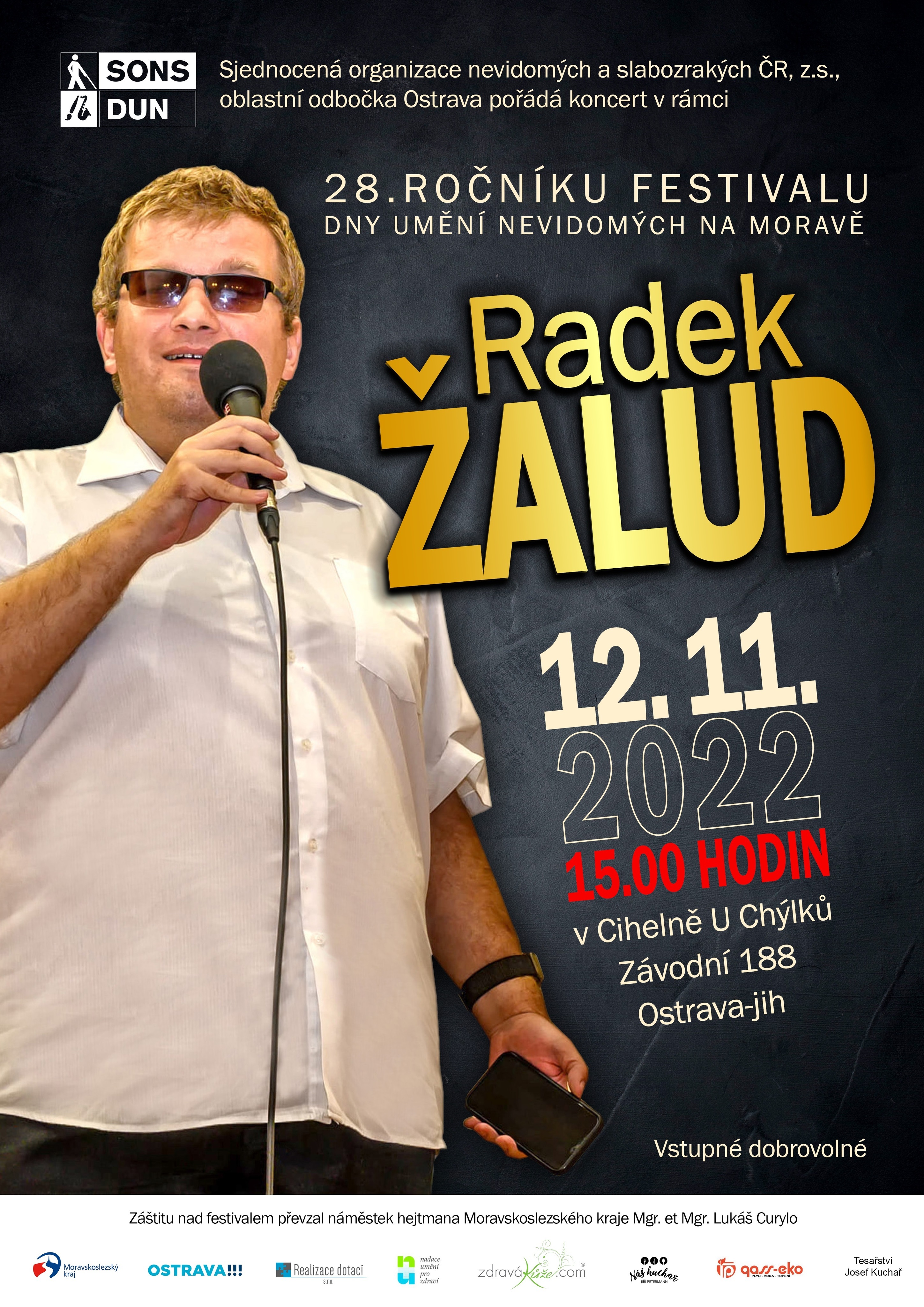 Zveme Vás na koncert zpěváka Radka Žaluda, který proběhne v rámci 28. ročníku festivalu Dny umění nevidomých na Moravě.