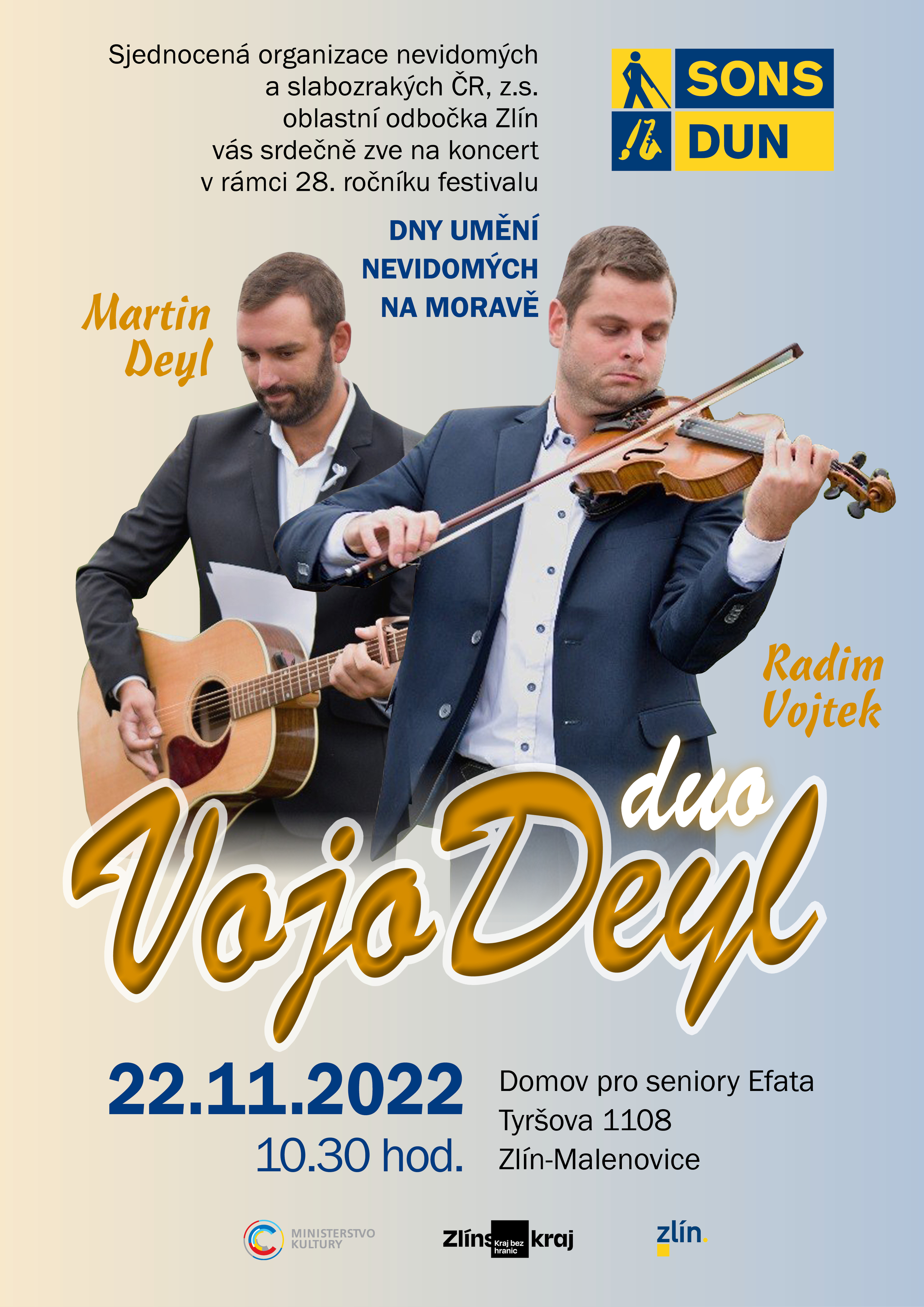 Zveme Vás na vystoupení dua VojoDeyl, které se koná v rámci 28. ročníku festivalu Dny umění nevidomých na Moravě.