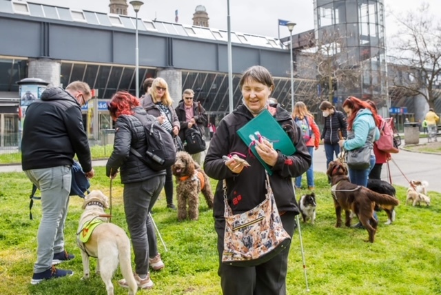 Tak jsme nazvali náš další virtuální pochod, který jsme odstartovali „naživo“ 1. května 2021 před pražským Hlavním nádražím. Sešli se tu zástupci několika psích plemen ze tří výcvikových škol; bylo to 7 psů v činné službě, jedna budoucí a jedna zasloužilá psí máma a 3 nevodící kamarádi.