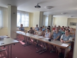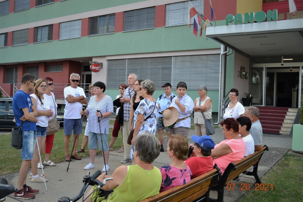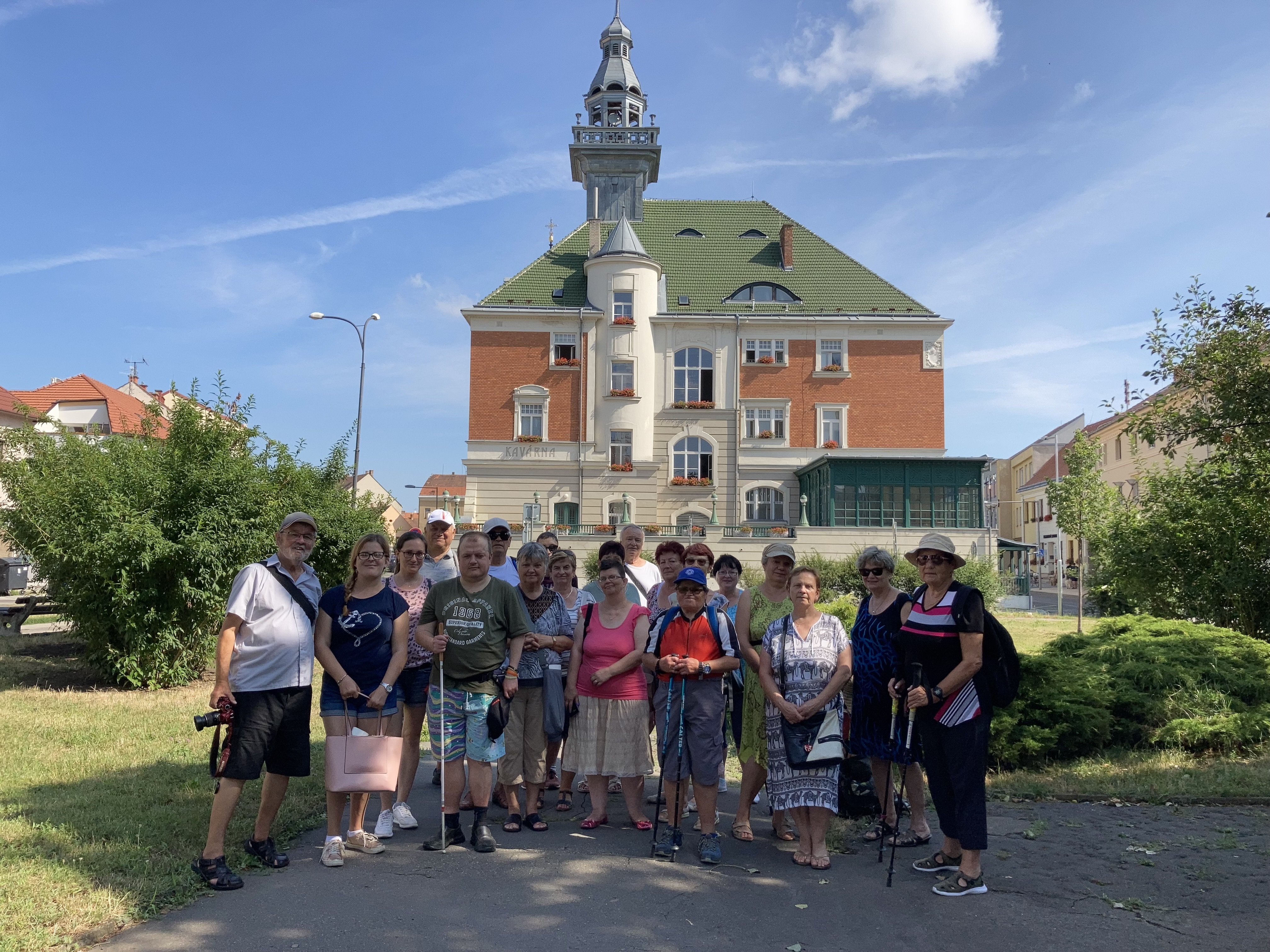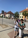 Naše skupina jela poloprázdným vlakem do Hodonína, kde nás čekaly taxíky a zavezly nás do pěkného hotelu Panon. Byli jsme ubytováni v 5. patře, kam jsme jezdili výtahem. Po zabydlení jsme šli na krátkou procházku po Hodoníně.