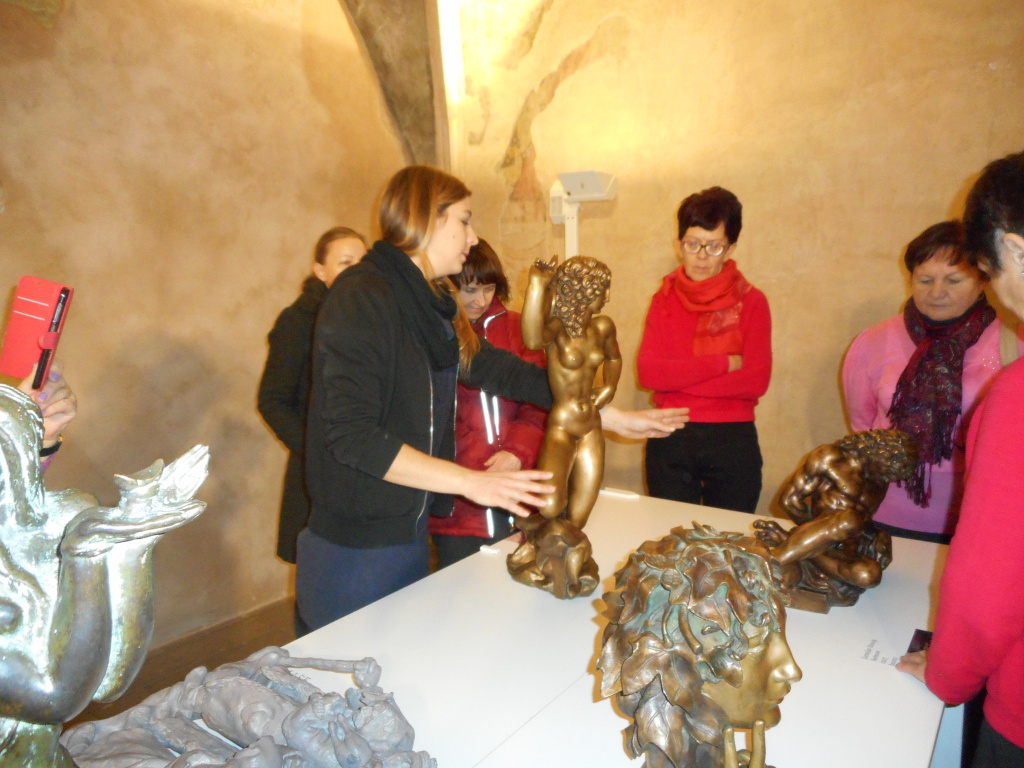 Bylo mrazivé lednové ráno, ale přesto jsme se vydali do Prahy. Těšili jsme, že poznáme v Praze dům, který bychom mohli přehlédnout. Na Staroměstském náměstí stojí dům se zajímavou historií. Je to Dům U Kamenného zvonu. Prohlídka začala s mladou průvodkyní, která nás postupně seznámila s historií tohoto objektu. Provedla nás prostorami, které jsou pro běžné návštěvníky jen zřídka otevřené. Historie sahá až do 12. století. Je doloženo, že v těchto prostorách pobýval Jan Lucemburský a Eliška Přemyslovna. Historikové připouštějí možnost, že se zde narodil sám král Karel IV. V průběhu staletí tvář domu procházela různými úpravami. Součástí naší návštěvy byla i haptická prohlídka některých z exponátů z tvorby sochaře Jaroslava Horejce. Mohli jsme si sáhnout na biblické postavy Dalilu a Samsona, bohyni Juno. Představit si reliéf s názvem Lov a sbírání dřeva, osahat hlavu znázorňující listopad a pocítit hladkost povrchu černé kočky. V Galerii Hlavního města Prahy jsme měli možnost zhlédnout další krásné sochy. Praha je krásná, každý dům v sobě skrývá mnoho tajemství, bohatou historii, kterou stojí za to objevovat. A tak se již těšíme na další putování po Praze. A budeme-li mít přitom tak erudovanou průvodkyni, jako byla slečna Markéta, nebude nám nic chybět.