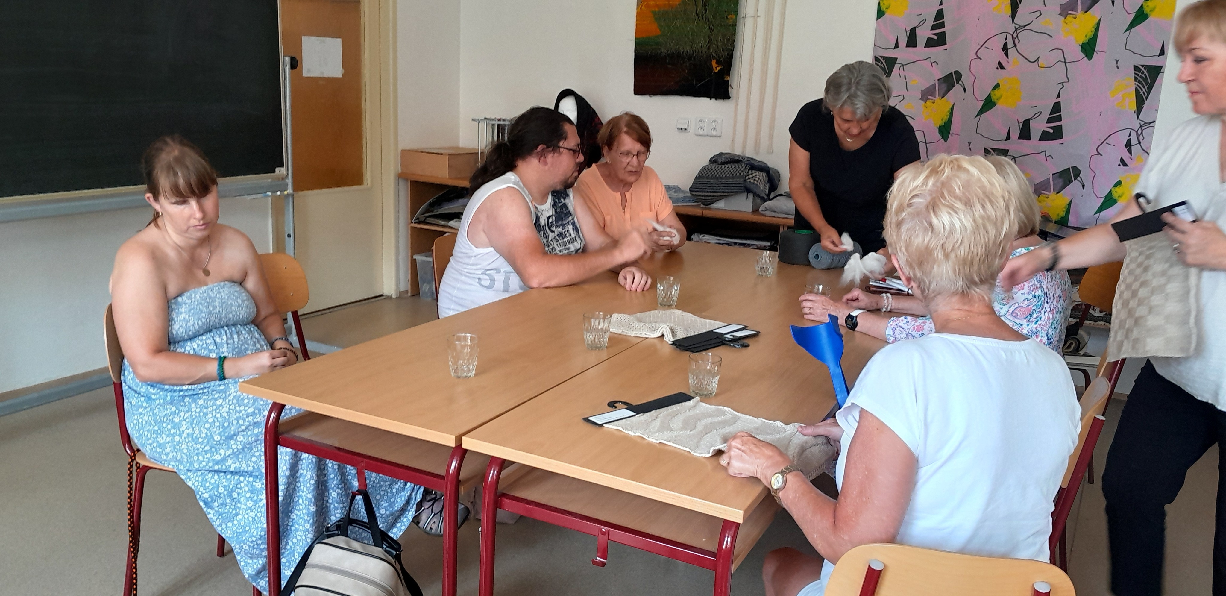 Dne 21. července nás čekala velmi zajímavá exkurze v budově areálu TUL s názvem Textilana oblékala moderního člověka. Program byl nabitý a informace, které nám zprostředkovala paní V. Bergmanová se svojí úžasnou kolegyní pro nás byly velkým přínosem. Dověděli jsme se, co je textil, co všechno lze spřádat (ukázka vláken a přízí), působení textilního průmyslu v Liberci a okolí, osud textilek (povídání o vzniku a vývoji textilních továren, nová situace po znárodnění a následně po roce 1989...), dále sortiment Textilany - plošné textilie - tkaniny a pleteniny, jejich omak, použití. Připraveno pro nás bylo mnoho hmatových ukázek a vstřícnost přednášejících dam k našim členům se zrakovým handicapem jedním slovem - skvělá.