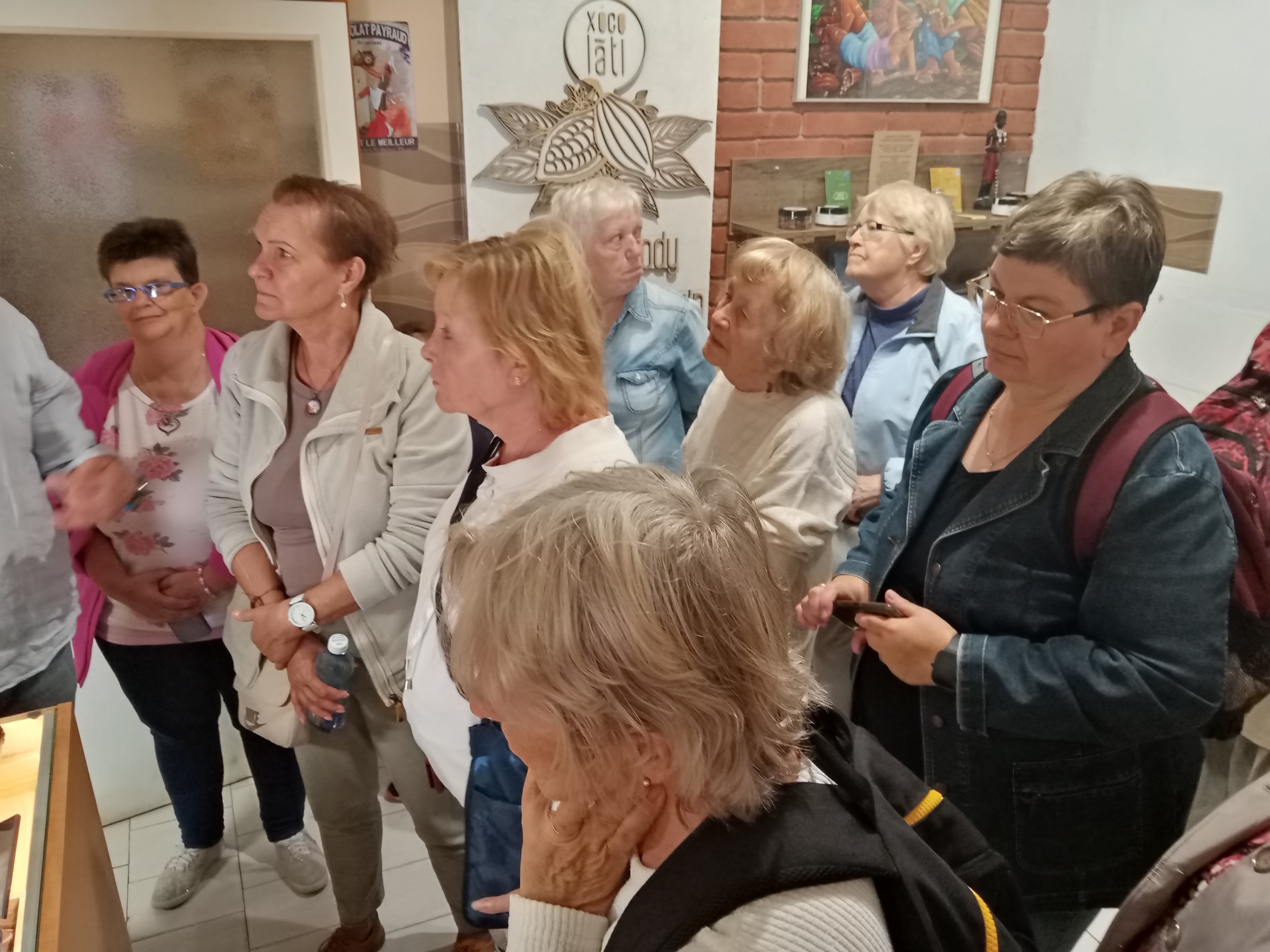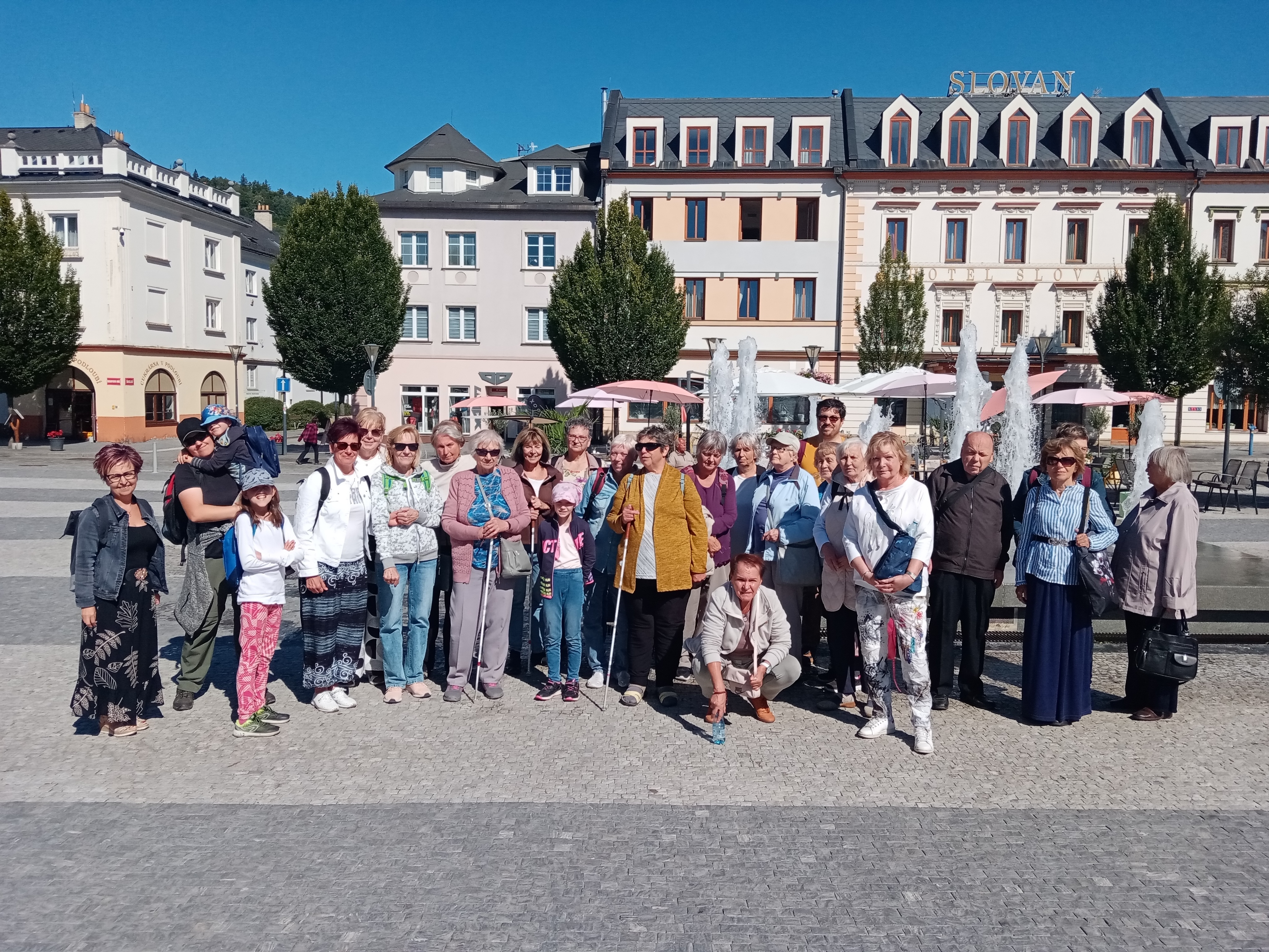 Úterní den 26. srpna 2025 byl ve znamení vydařeného výletu do Jeseníku. Panovalo zcela ideální počasí a na vlakovém nádraží v Jeseníku už na nás čekala paní kolegyně z jesenické pobočky Aneta Fikáčková se dvěma členkami. Byla to pro nás, co Jeseník známe tzv. „z rychlíku“, veliká výhoda, protože místní nás vedly hbitě zkratkami až na místo. Na tento výlet se přihlásilo celkem 24 lidí, proto jsme vytvořili dvě skupiny, které se v prohlídkách čokoládovny a muzea prostřídaly.