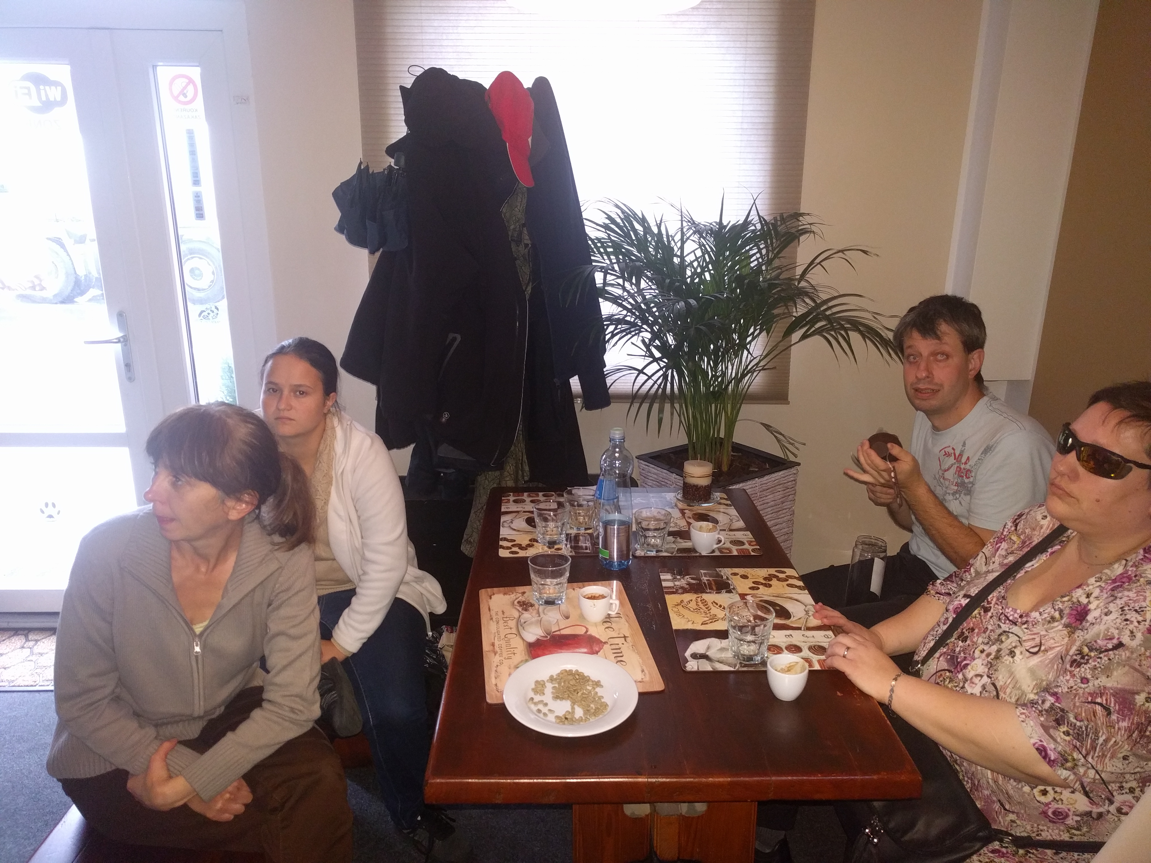 Ve čtvrtek 20. října jsme se za dešťového doprovodu vydali autobusem do pražírny kávy v Kvítkovicích. Pražírna se nachází u velmi frekventované silnice a tak nás příjemně překvapil klid a pohoda spolu s vůní kávy, která nás při vstupu do kafírny okamžitě obklopila.