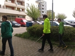 Další aktivitou pro žáky byla možnost vyzkoušet si chůzi s bílou holí (s klapkami na očích). Pár dětí mělo zprvu strach a obavy z chůze "potmě" venku, ale nakonec si bílou hůlku vyzkoušeli téměř všichni.