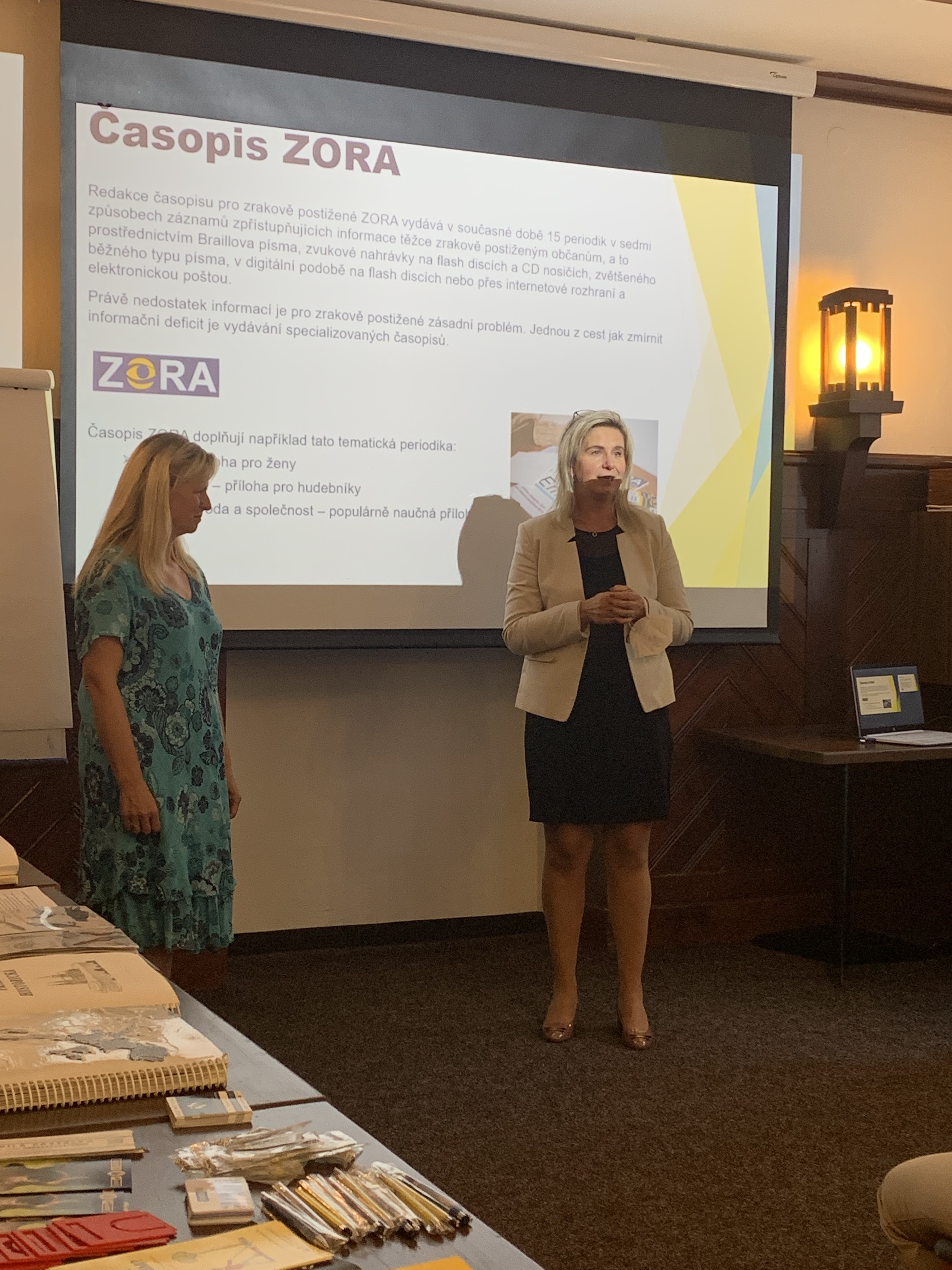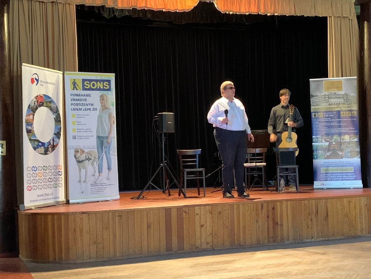 Salonek lázeňského domu Libuše poskytl zázemí pro vybudování příjemného prostředí aktivitám spojeného s prezentací festivalu, života osob se zrakovým postižením, časopisů vydavatelství Zora a různých druhů kompenzačních pomůcek. Salonek zaplnili do posledního místa členové SONS, lázeňští hosté a pozvání přijal také náměstek hejtmana pro oblast kultury Moravskoslezského kraje Lukáš Curylo, starosta Bruntálu Petr Rys a mile nás potěšila starostka Karlovy Studánky Radka Chudová. Kompenzační pomůcky a simulační brýle pro zrakové vady upoutaly velkou pozornost stejně jako představení aktivit SONS v rámci festivalu pro rok 2022.