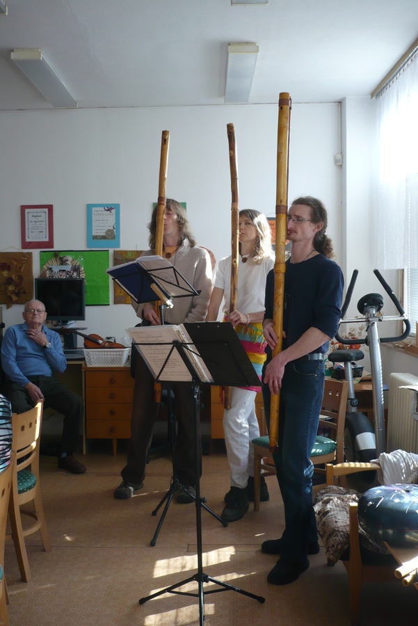 Víte jak zní sluneční buben? Víte jak hrají slovenští bačové? Víte jak zní housle s kombinací fujary a afrického bubnu? My už ano. Dne 16. 3. 2016 naší odbočku v České Lípě navštívili tři fujaristé (skupina Naše Fujary). Hodinu nám hráli a zpívali lidové písně se zaměřením na přírodu.