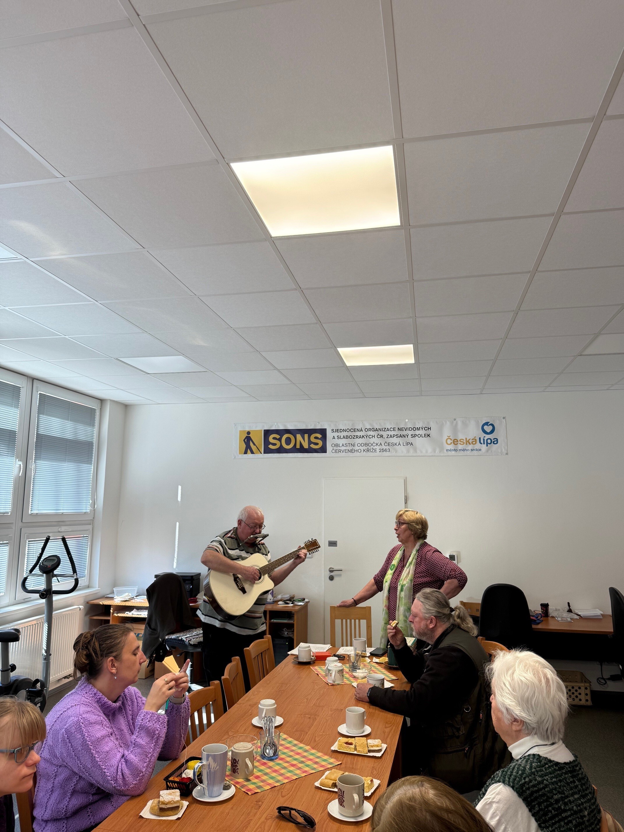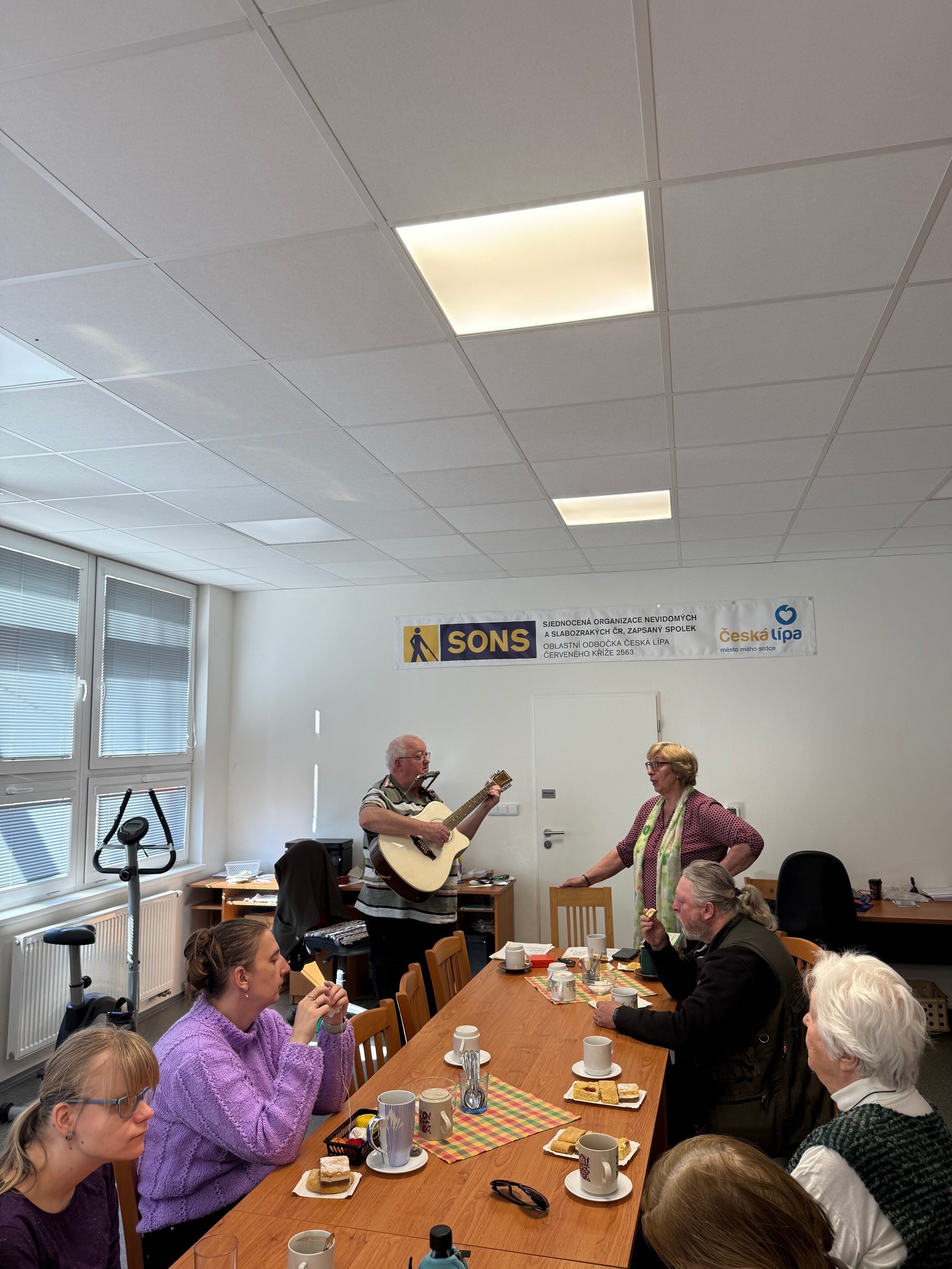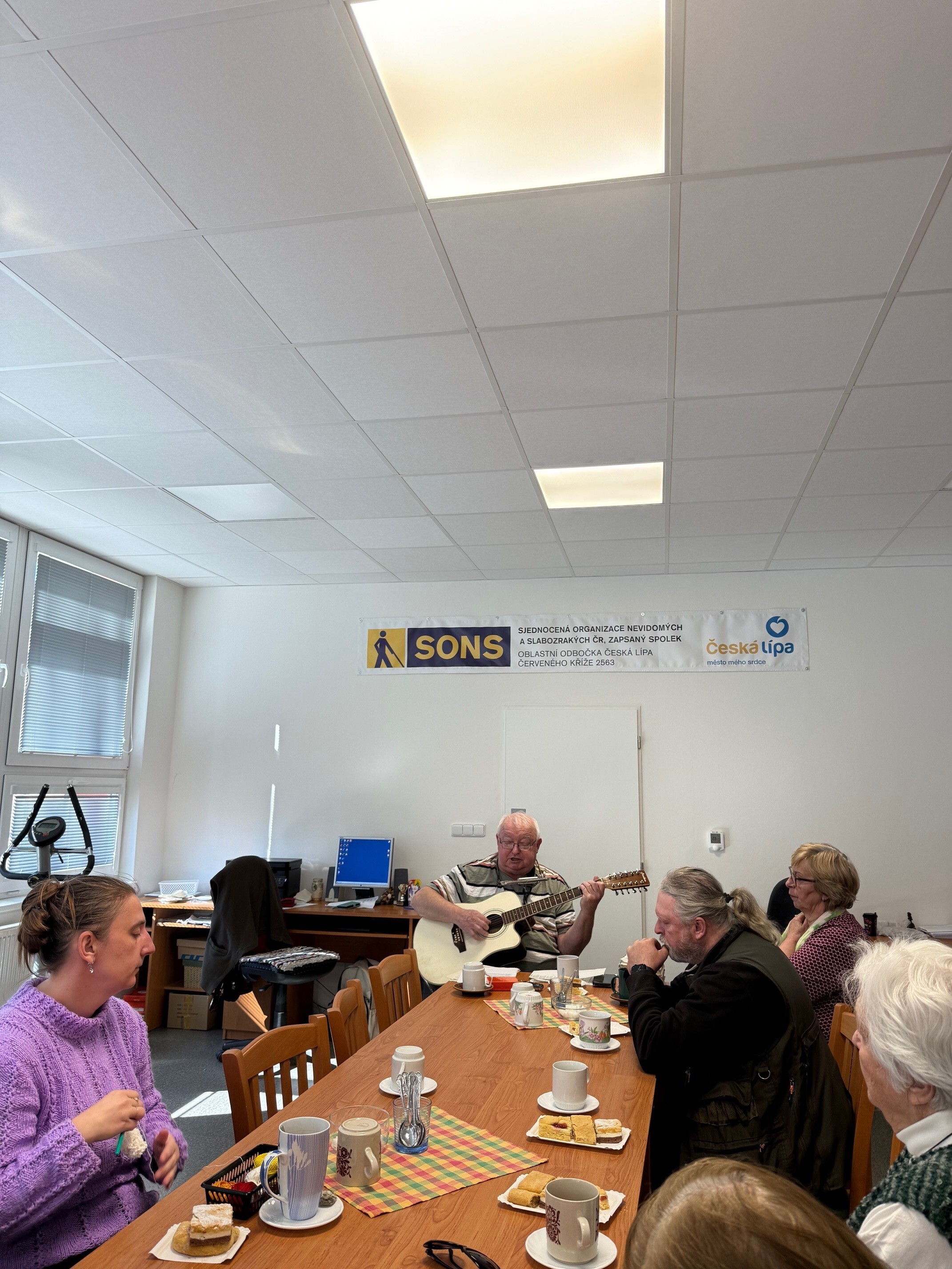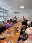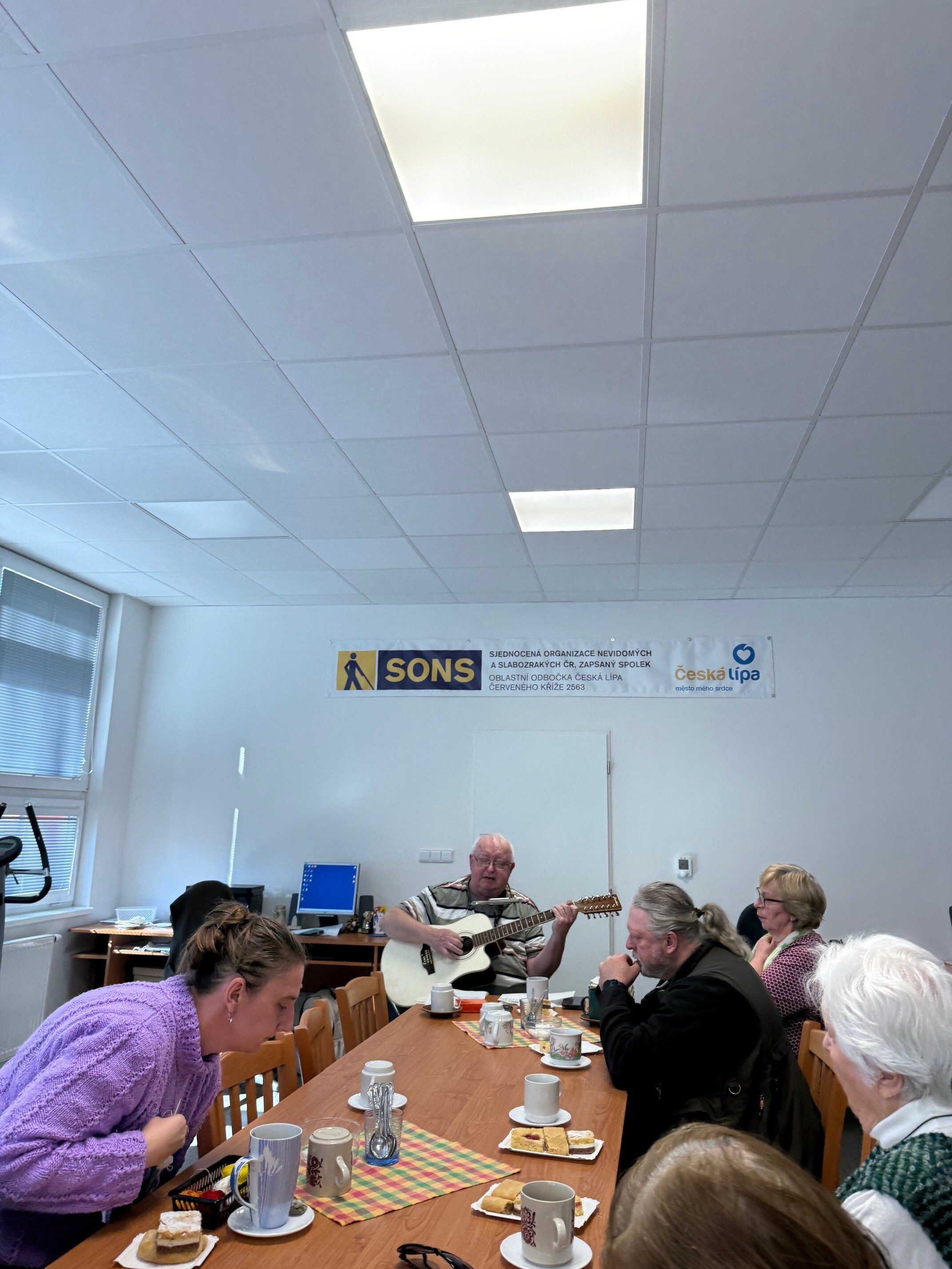 V naší odbočce SONS jsme měli příležitost přivítat opět pana Randuse, který nám zahrál a zazpíval skladby ze své vlastní tvorby, ale i známé písně. Jeho písničky byly lehce melancholické, vzpomínkové, a působyly velmi příjemně. Od začátku panovala uvolněná atmosféra a brzy jsme se přidali ke zpěvu. V druhé polovině programu jsme byli vyzváni, abychom si zvolili i písničky na přání. Pan Randus hrál nejen na kytaru, ale také na foukací harmoniku. Všichni jsme reagovali nadšeně a na závěr ocenili pana Randuse velkým potleskem. Už teď se těšíme na jeho další návštěvu.