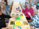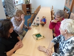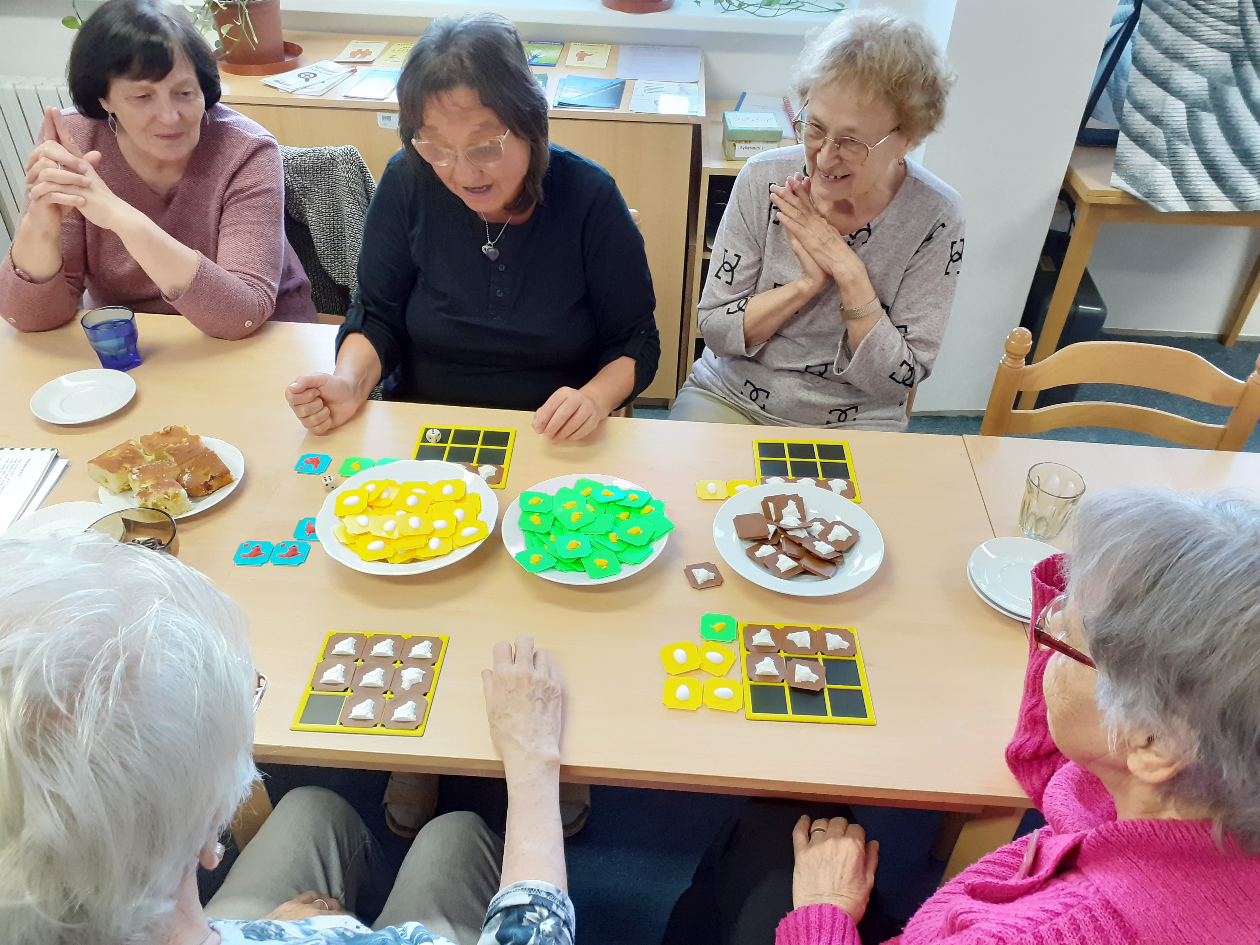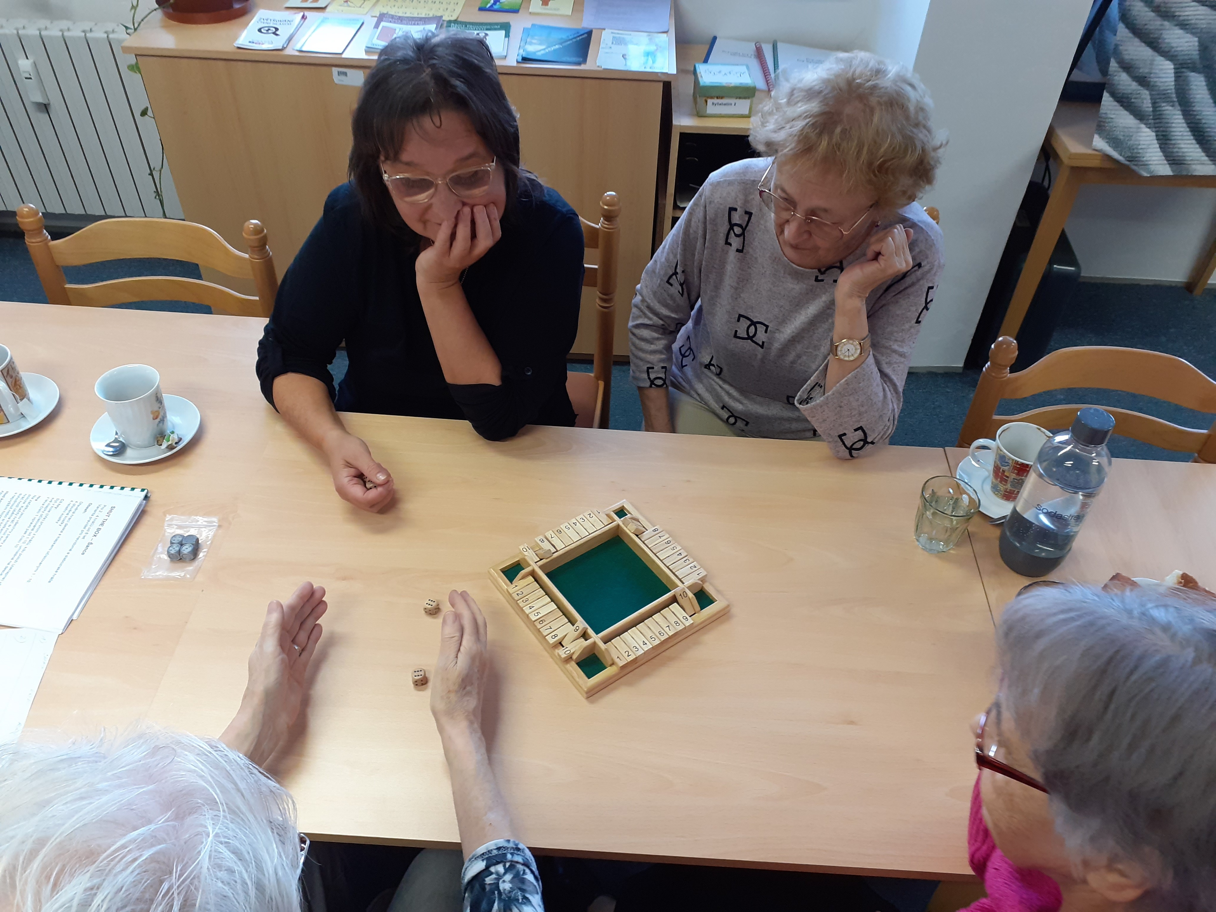 Dne 17. 10. dopoledne u nás na odbočce jsme pro naše uživatele uspořádaly herní dopoledne s novými hrami přizpůsobenými právě pro zrakově postižené uživatele, které jsme obdržely z nadace profesora Vejdovského. Hráli jsme dvě různé hry - plný kurník a šanci. Prvně jsme vždy uživatelům vysvětlily pravidla hry a následně jsme se pustili do samotného hraní. Uživatelům se hry moc líbily (až tak, že si je chtějí taky pořídit).