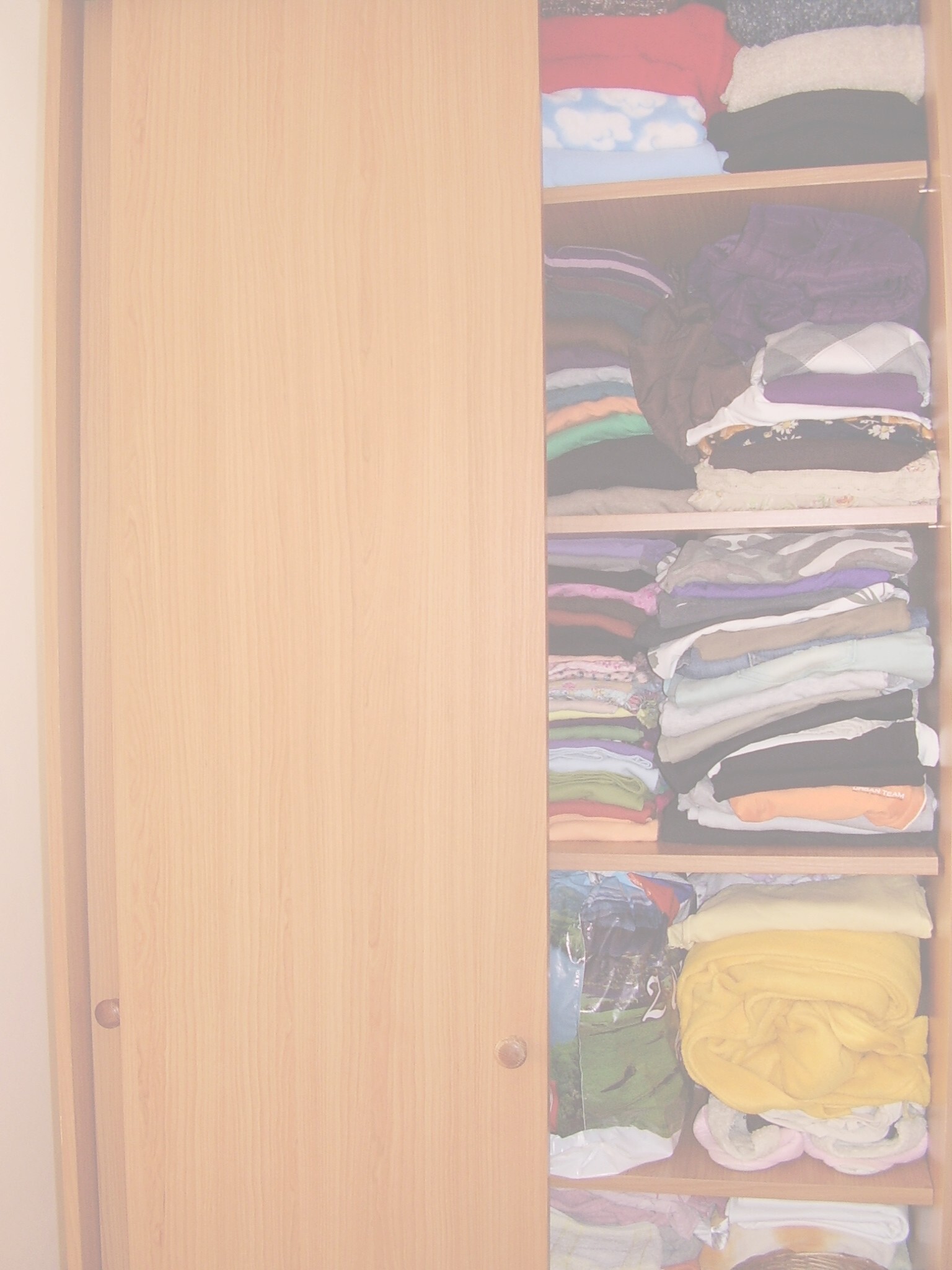 Několik tašek a krabic s obsahem, který by dokázal uspokojit i zapřisáhlého nudistu. No fakt, člověk k nám mohl přijít klidně nahatý a oblékl by se (tedy spodní prádlo jsme měli jen v podobě podprsenek, i úplně nové ponožky se našly, jen prádlo intimní žádné), ale divili byste se, kolik našich spoluobčanů to stejně nenosí.