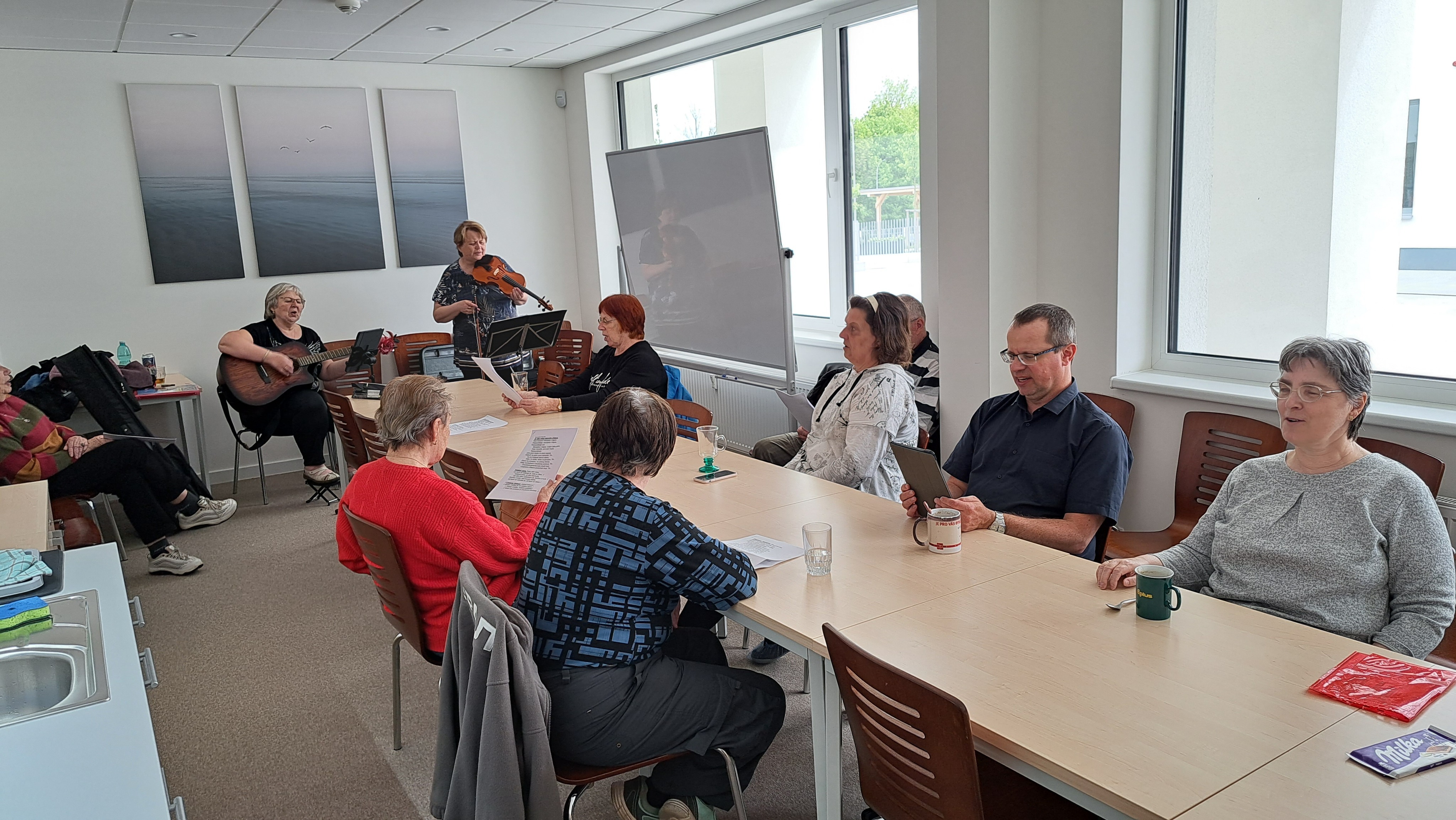 Do třetice všeho dobrého a setkání milého. Ivanka a Miluška si pro nás opět připravili několik písniček od nás i ze Slovenska a my jsme si je společně za kytarového doprovodu a houslové předehrávky, zazpívali. Některé písničky zkusily jsme opět v kánonu. A vzpomínáte, minule jsem Vás informoval, že přijdou i nějaká ta překvapení. Tak tady jsou. K zpěvu patří určitě dobré jídlo, o které se nám postarala Alenka, dále vínečko bílé. A protože tou dobou Velikonoce se blížily, paní Kubecová nám zajímavě povyprávěla o zvycích ze svého rodného kraje na Moravě. Závěrem nám ještě Ivanka zazpívala sólově písničku, která tematicky doplnila již tak skvělé odpoledne.