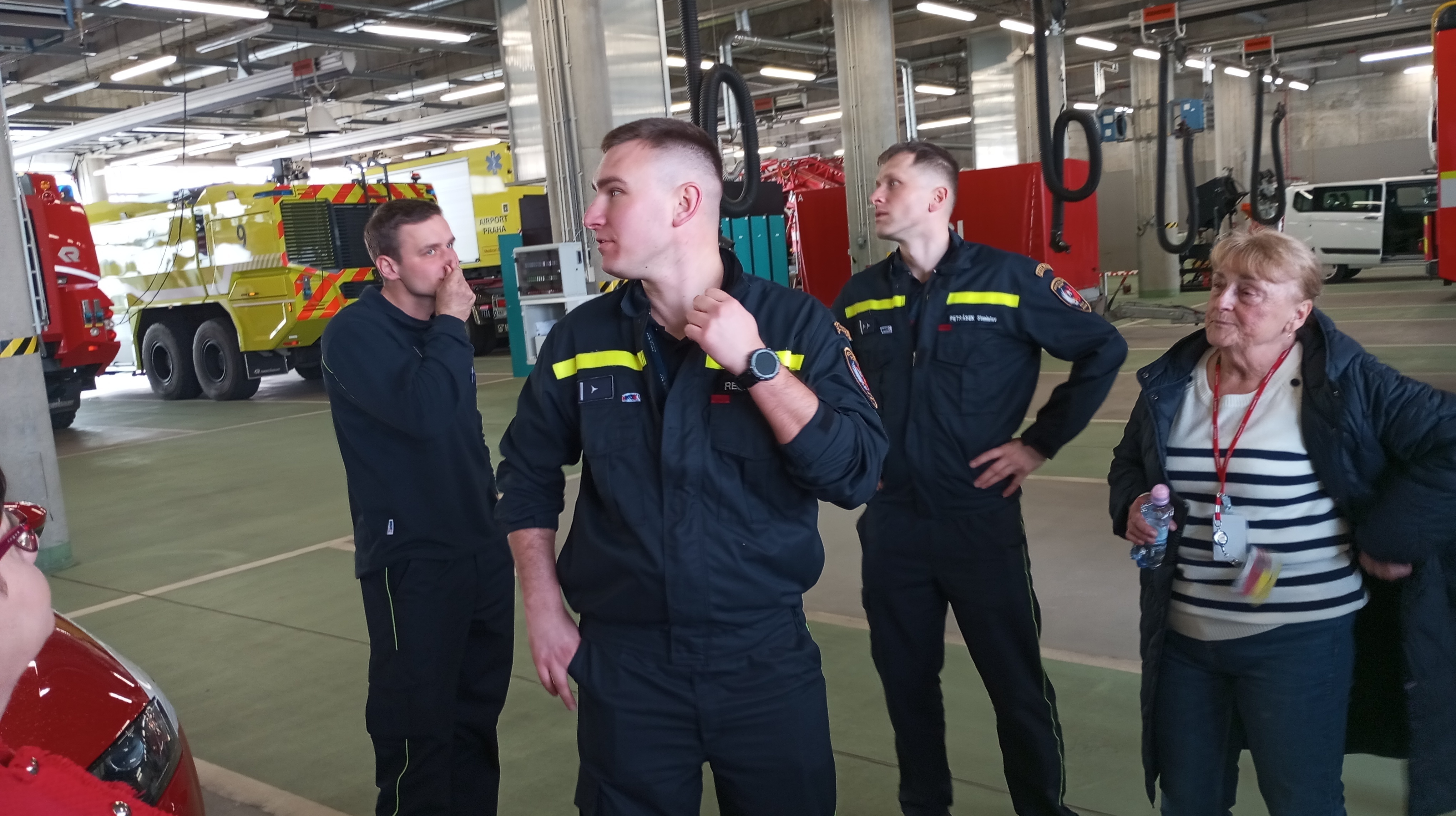 Energii pro náročný druhý den účastníci čerpali díky dobré, i když brzké snídani a společně jsme se vydali na prohlídku Letiště Václava Havla. Haptické zkoumání detekčních pomůcek předznamenalo cca hodinovou projížďku po letištních terminálech spojenou s podrobným popisným výkladem skvělé průvodkyně, díky níž známe časté typy letadel, oblečení posádek různých leteckých společností, zvířata a živočichy v rámci biologické ochrany letiště, speciálně vycvičené čichací psy, pomocná autíčka na rozjezd a parkování letadel a spoustu dalších zajímavých věcí z vnitřního života letiště. Jedinečným zážitkem bylo setkání s letištními hasiči a jejich technikou, usměvaví pánové nám přiblížili svoji práci a také předvedli sjezd z druhého patra budovy po tyči do garáže. Plní dojmů jsme se poté vydali do centra Prahy na oběd a skupina se rozdělila na dámskou a pánskou část. Dámy zamířily do Obecního domu na výstavu šatů Blanky Matragi a pánové na loď s ochutnávkou piva místního pivovaru. Velkým překvapením pro dámy byla skutečnost, že paní Blanka Matragi za námi na výstavu dorazila a se zájmem poslouchala, jak vnímáme její nádherné šaty a šperky. Obě skupiny se poté potkaly v České národní bance, přednáška a haptická prohlídka nám potvrdila vliv ČNB na ekonomiku našeho státu a závěrečné potěžkání velké zlaté cihly se stal zlatou tečkou programu v centru města. Večerní družné klábosení ve sklípku s výborným jídlem a pitím zakončilo náročný, avšak nadmíru uspokojivý páteční program.
