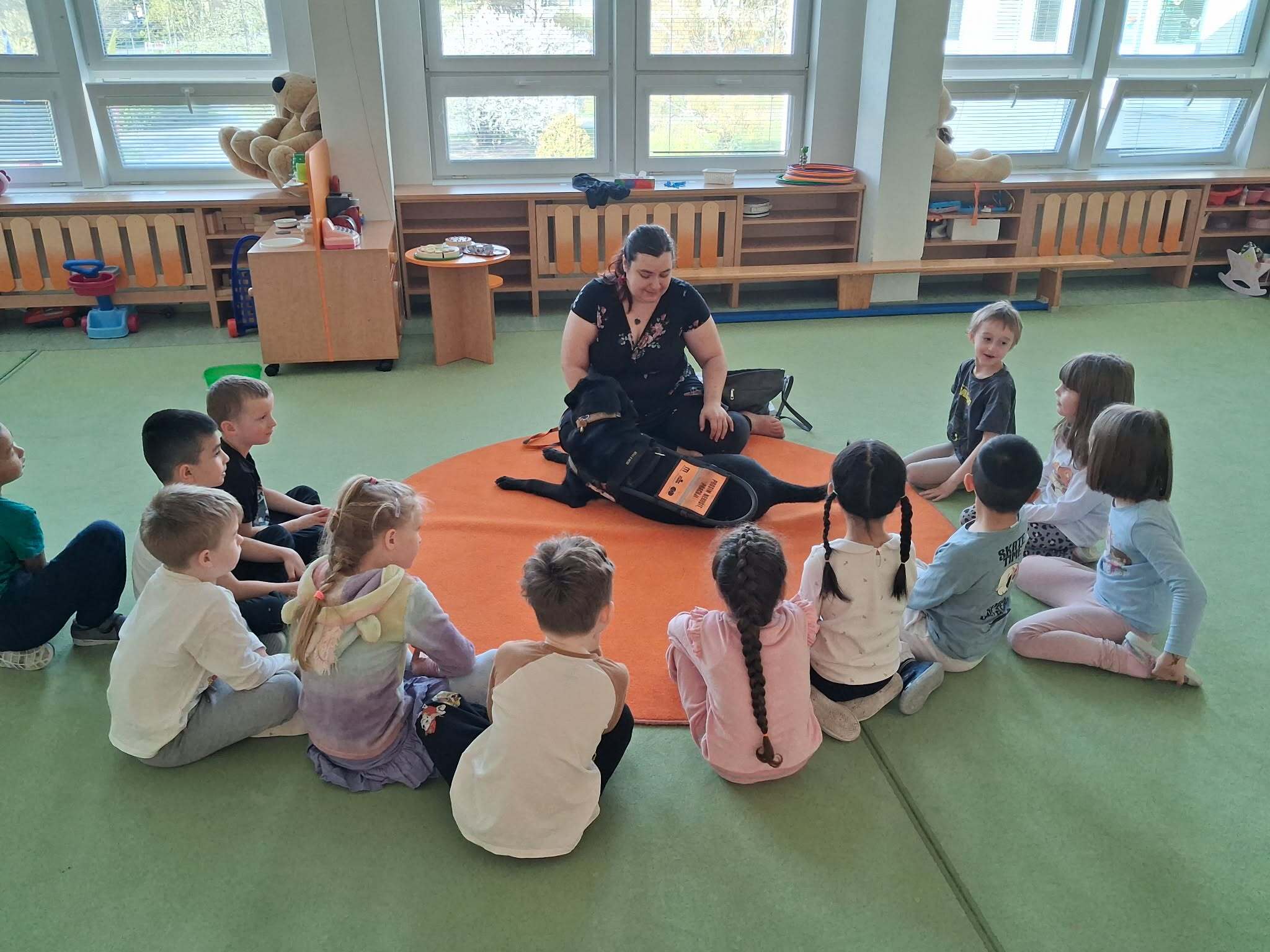 Tam si s dětmi povídala, ukázala jim různé drobné pomůcky a hmatovou obrázkovou knížku.