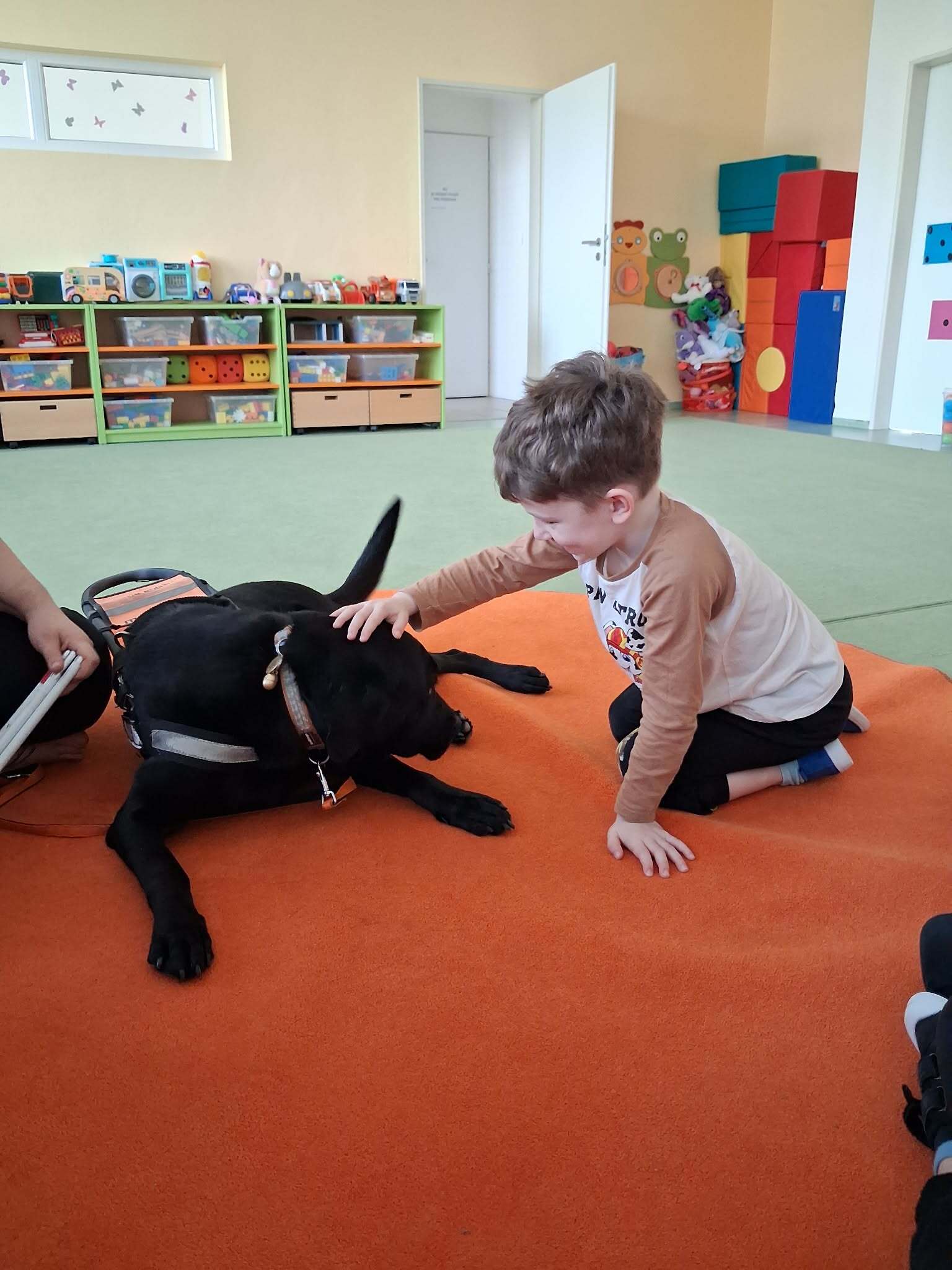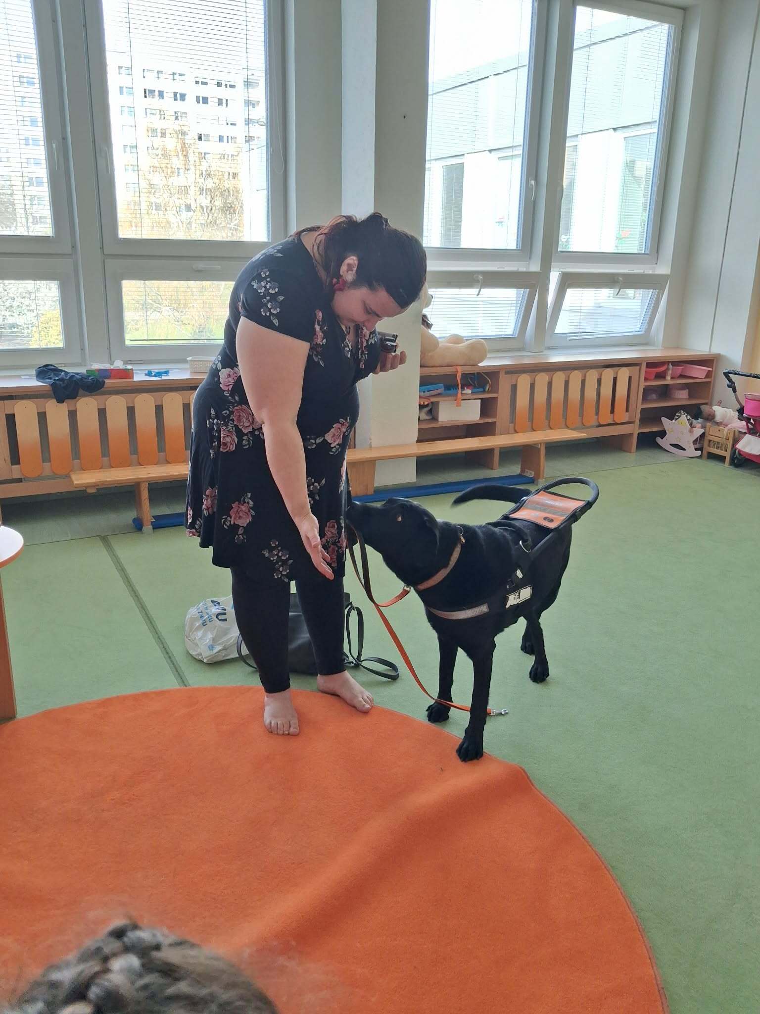Lia ochotně předváděla, co všechno vodicí pes umí, a za odměnu se nechala hladit a mazlit.