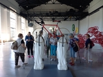 V turbínové hale jsou vystavena monumentální díla sochařů a sochařek. Další část výstavy jsou obrazy. Díky velikosti většiny z nich jsme si i my se zrakovým handicapem přišli na své. Nejvíce nás zde zaujal obraz Cyklista vezoucí meloun.