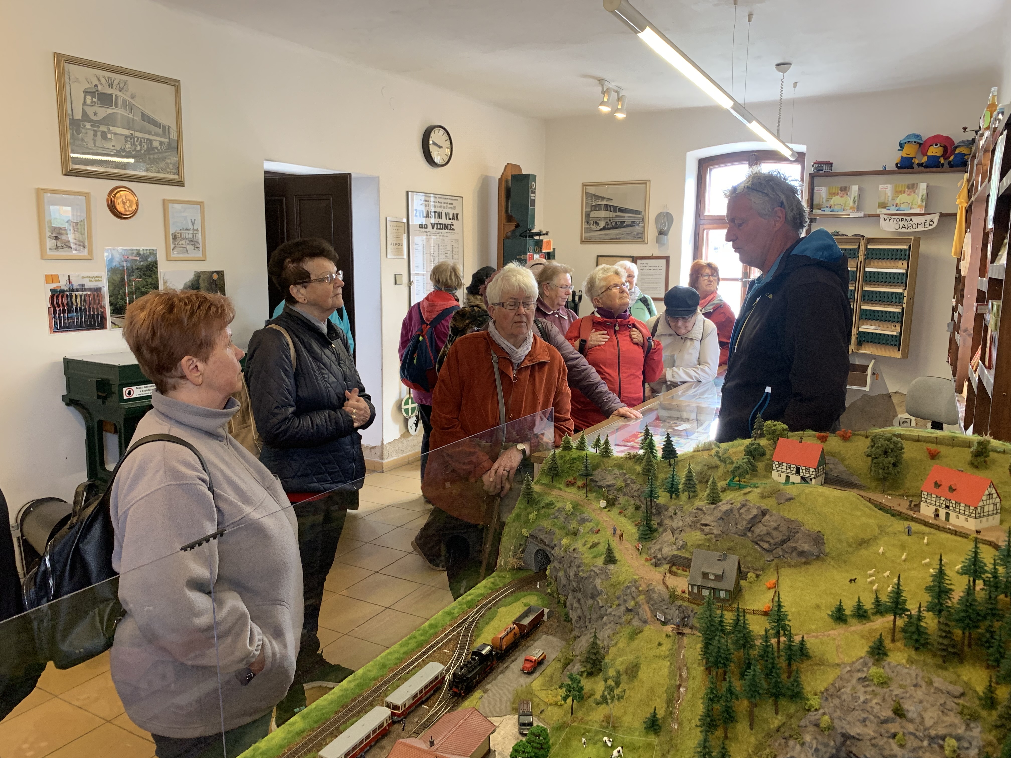 Na jaroměřském nádraží jsme se přivítali s přáteli z Trutnova a přešli k železničnímu muzeu. Téma komentované přehlídky bylo zaměřeno technicky, ale díky poutavému výkladu průvodce pana Černého zaujalo každého.