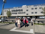Po příjezdu nás přivítal pan Vojtěch Říha, který nám poskytl velmi poutavou a vstřícnou komentovanou prohlídku celého fotbalového stadionu. Díky jeho výkladu jsme měli možnost nahlédnout do zákulisí tohoto nového sportovního svatostánku a poznat místa, kam se běžný návštěvník jen tak nedostane.