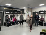 Navštívili jsme šatnu domácího A-týmu, kde jsme si dokázali lépe představit atmosféru před samotným zápasem. Velmi nás potěšilo, že v kabině domácích bylo jméno každého hráče uvedeno také v braillově písmu, což je krásný příklad vstřícnosti a přístupnosti pro osoby se zrakovým postižením.