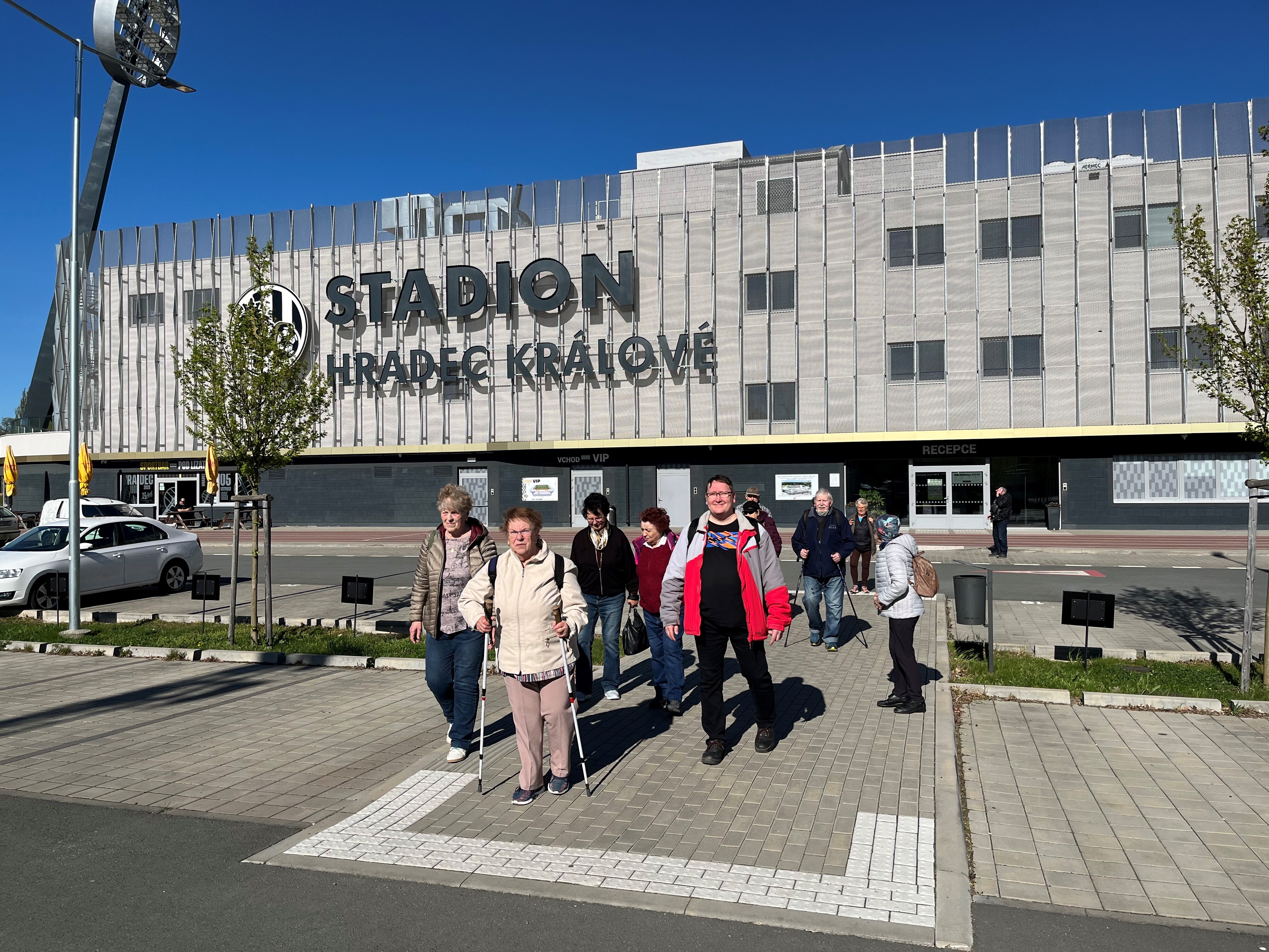 Skupina zrakově postižených z oblastní pobočky SONS Náchod podnikla ve čtvrtek 23. dubna 2026 zajímavý výlet do Hradce Králové, jehož hlavním cílem byla návštěva moderní Malšovické arény.
