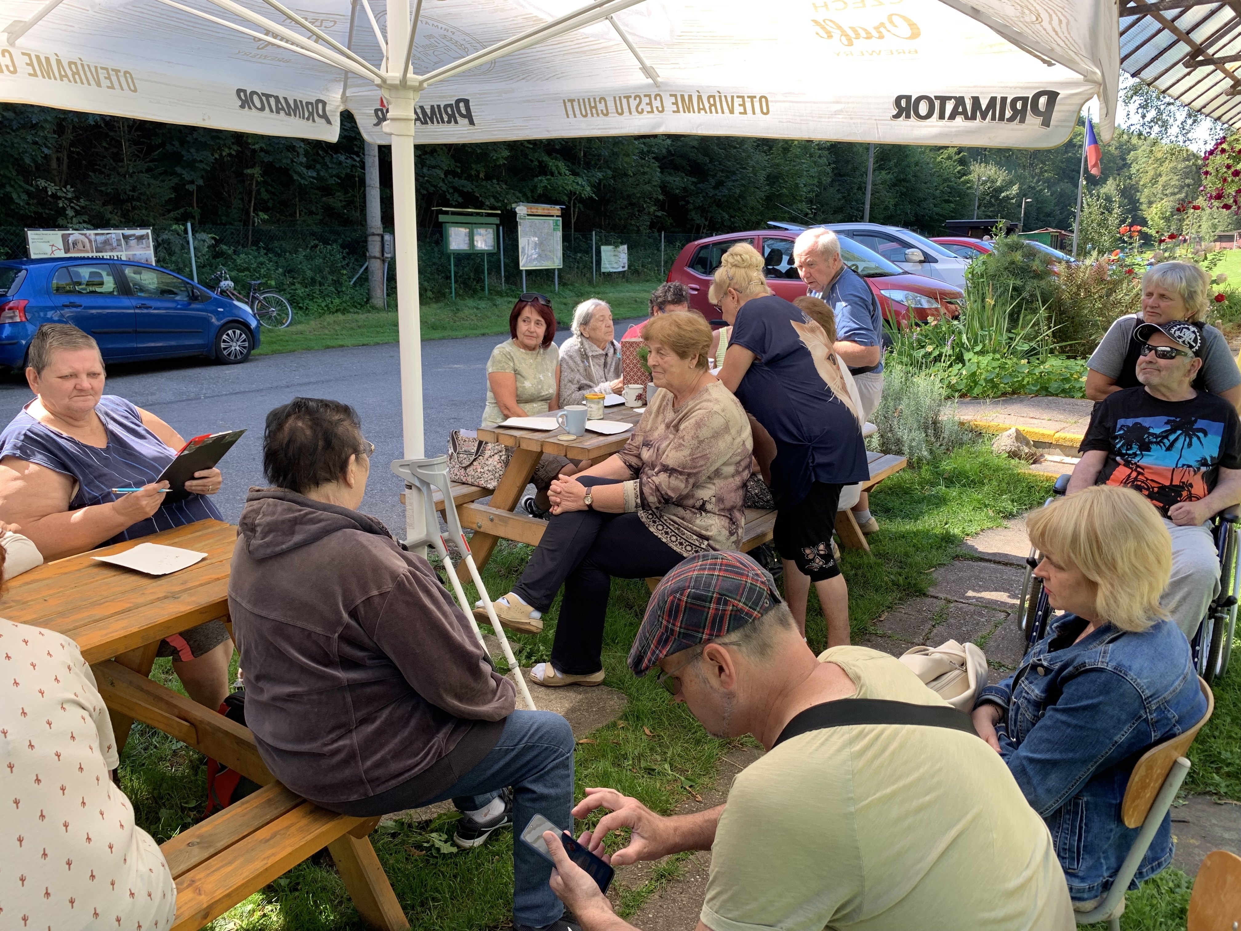 Po roce jsme se opět sešli v romantickém údolí Bělovse. Setkání mělo tentokrát slavnostní ráz. Zavzpomínali jsme na paní Olgu Fruhaufovou, která se léta starala o zdravotně postižené spoluobčany. Už není mezi námi. Čest její památce. Přivítali jsme i nové členy. Je to Jaroslava Bůžková, Marta Klímová a půvabná Katka Dvořáková, která pěkně zpívá a je členkou pěveckého sboru Hron. Navíc umí na uvítanou dělat dobré zákusky.