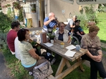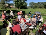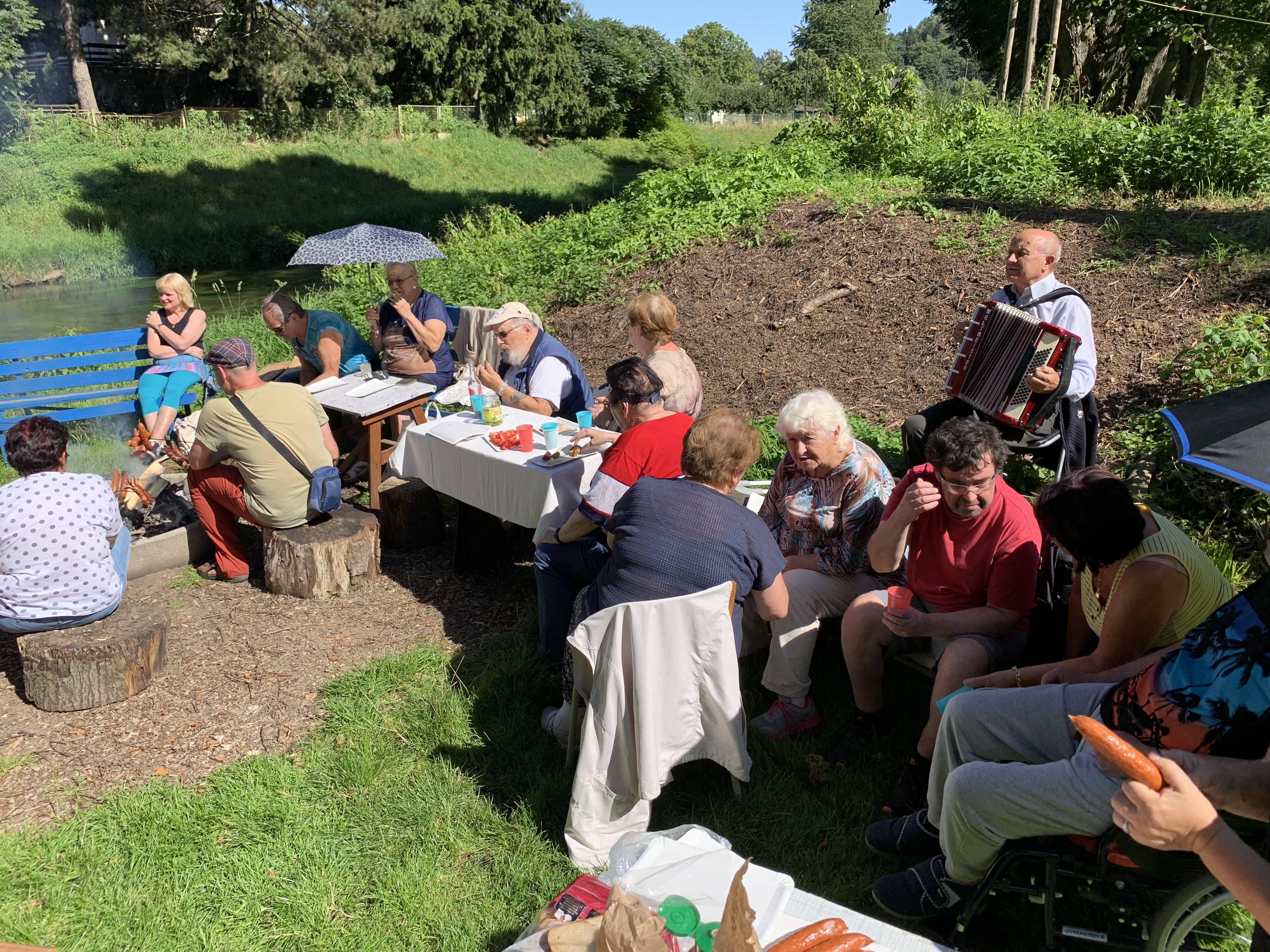 Hlavní gratulace však patřila dlouholeté člence Lídince Strbíkové dožívající se v těchto dnech devadesátých narozenin. Nemalým peněžním darem také přispěla na činnost organizace. Jste moje rodina, říkává často a my si jí velmi vážíme. Však jí také paní Věra Máslová složila oslavnou báseň. Ta umí nejen dobré zákusky a záviny, ale je i duše poetická. Vzpomínali jsme na stále čilou a ochotnou Ivu Procházkovou. Ráda by tu byla také, ale po nehodě na kole se zúčastnit nemohla. I když řadu věcí pro zdar akce připravila. Po dobré kávě a zákuscích jsme se přesunuli k ohništi a u táboráku s vonícími klobásami si zazpívali písně na přání. Samozřejmě nesměl chybět pan Hejda s harmonikou. A jako každý rok nad námi šuměl les Montace. Vesele jsme se rozloučili s létem 2023. U řeky Metuje se sejdeme zase za rok. Její vody dávno odplují do moře, ale my se k jejím břehům ve zdraví a pokoji opět vrátíme, abychom oslavili tentokrát konec léta 2024.