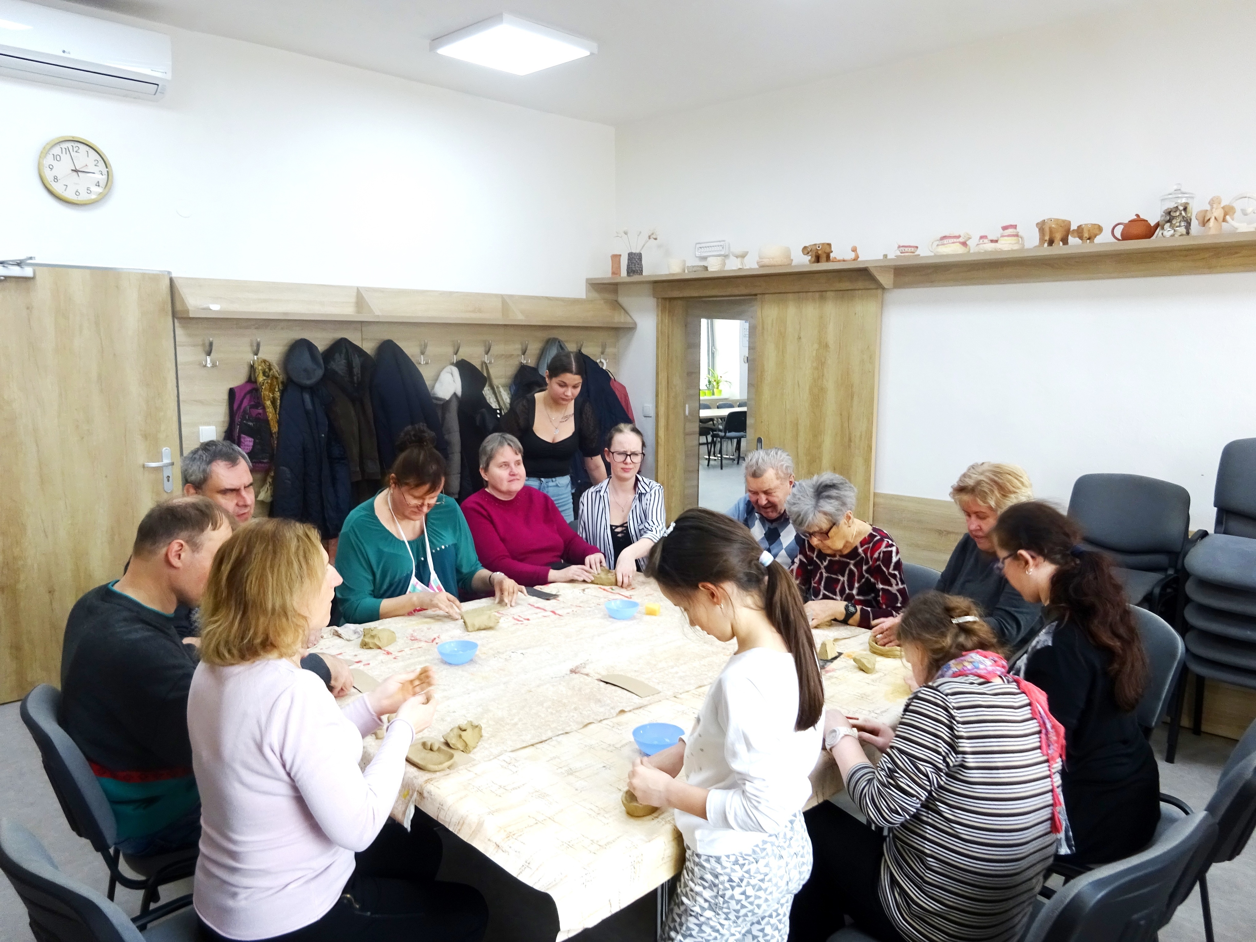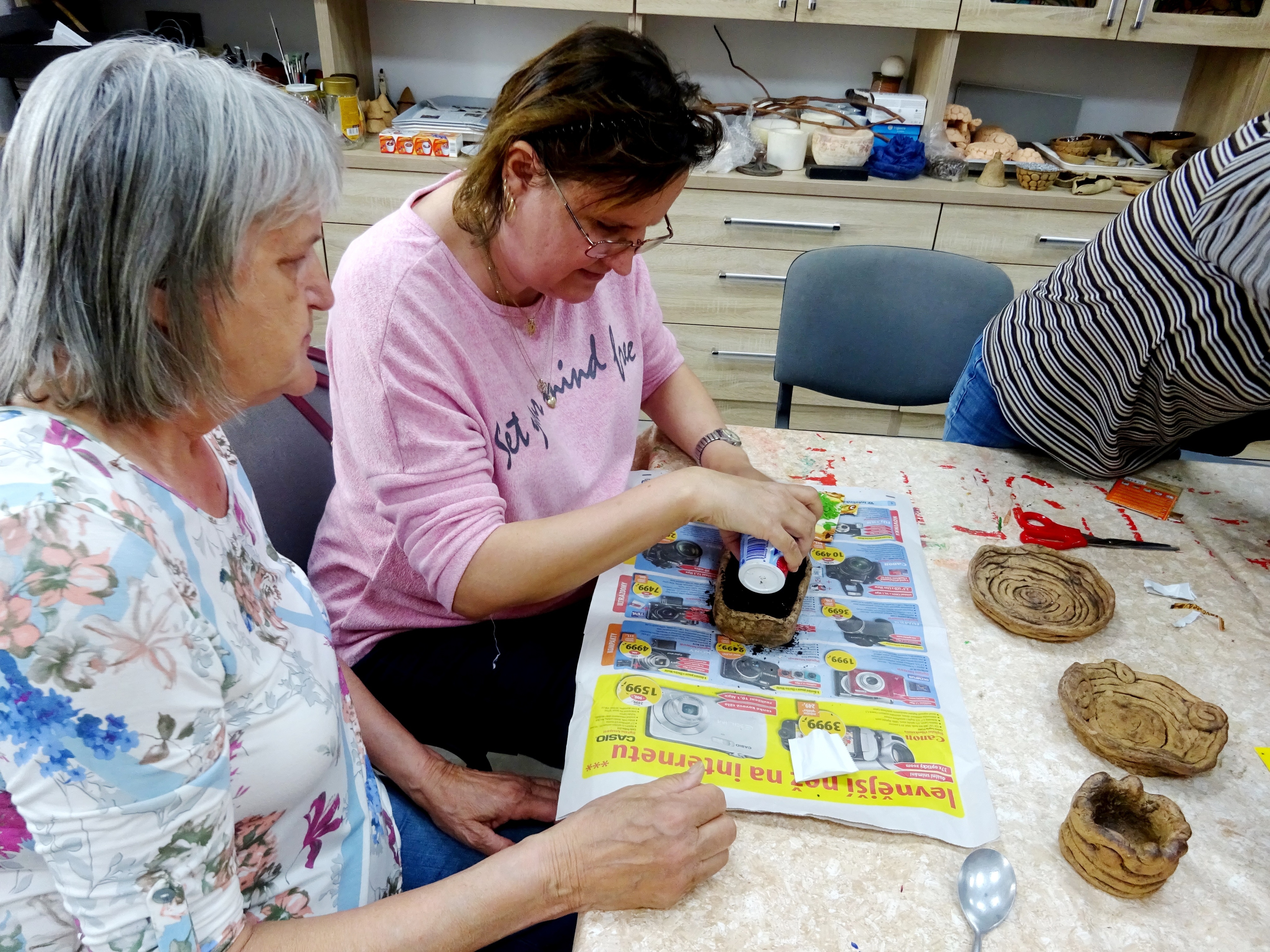 To si jeden týden ve výtvarné dílně, nevidomí za pomoci asistenta-dobrovolníka, vyrobí, natvarují z keramické hlíny nádobu, truhlík. Pak musí nějaký čas počkat, až jeho výrobek projde žárem keramické pece. Na dalším setkání ve výtvarce jej čeká čerstvě vypálené jeho dílo a mimo to další potřebné propriety, které zajistili pracovnice. Předně je to hlína, semínka bylinek, zápichy k popiskům, fixa či připravený popis v Braillově písmu.