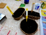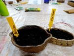 A pak každý dle svých schopností si pomocí šufánku-po našem, naběračkou-po vašem, naplní hlínou svoji nádobu, vybere si sympatickou bylinku, vpraví do hlíny. Nevidomí si nejdříve semínka z pytliku přesypou do kelímku pro vhodnější manipulaci a je zasazeno. Pak je třeba lehce zavlažit a pro upamatování si popsat to, co jsem si zasadil. Nevidomý tak učiní Braillským popiskem. Sklízet už bude každý sám.