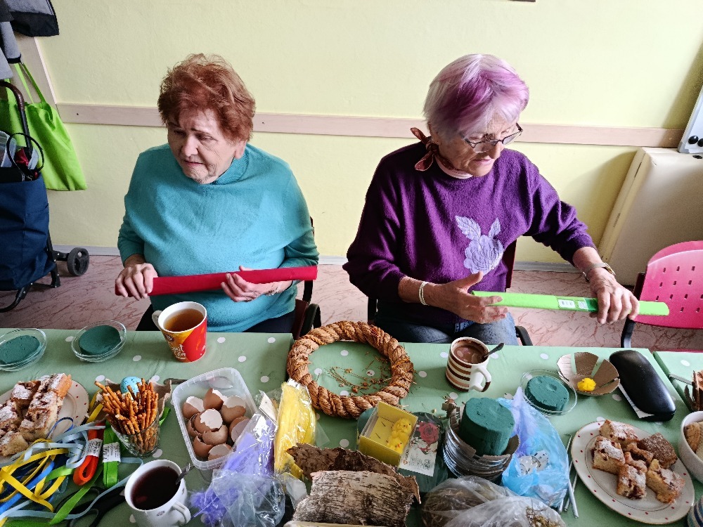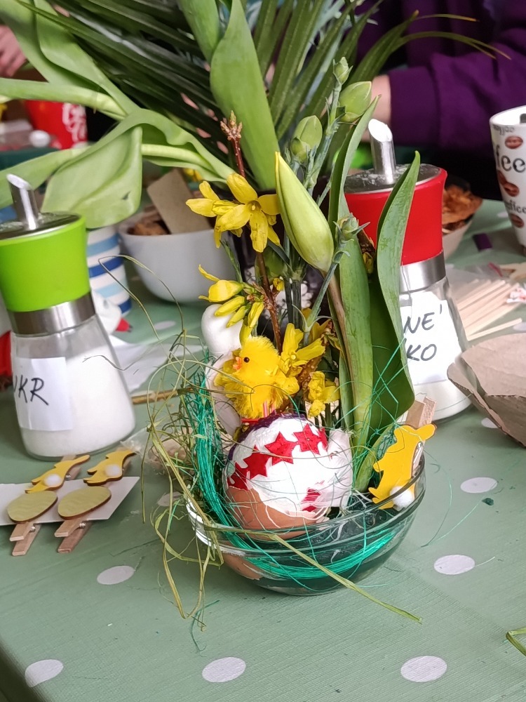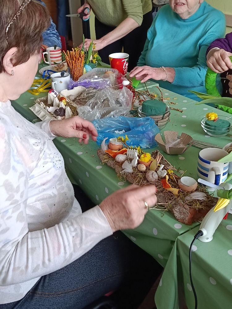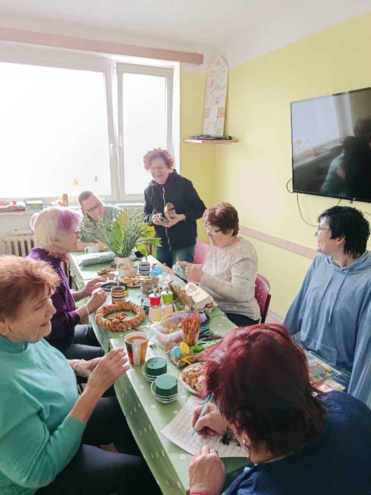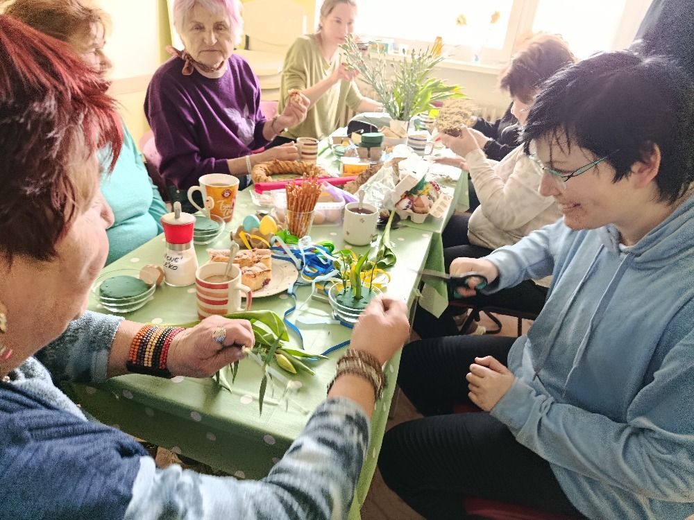 Poslední akcí měsíce března bylo jarní a velikonoční tvoření. Ve čtvrtek 26. března dopoledne jsme se sešli v naší klubovně, abychom se společně těšili na jaro a velikonoční svátky. Ruční tvoření je mezi našimi členkami velice oblíbené, příjemně se u něj odreagujeme, popovídáme si u kávy a tvoříme tématická dílka dle našich představ. Tentokrát jsme měli připravené malé skleněné mističky, aranžovací pěnu a květiny, které jsou symbolem jara. Společně s nejrůznějšími velikonočními dekoracemi a drobnostmi, které jsme již v klubovně měli, vytvořily naše členky skutečně krásná velikonoční dílka. Mnohé z nich donesly i vlastní větvičky či kůru, abychom měli k dispozici co nejrůznější materiály. Někdo si své výtvory odnesl domů, jiní nám je v klubovně nechali na výzdobu. Z tvoření jsme všichni odcházeli pozitivně a jarně naladěni. Budeme se těšit, až se zase společně sejdeme u další tvorby.