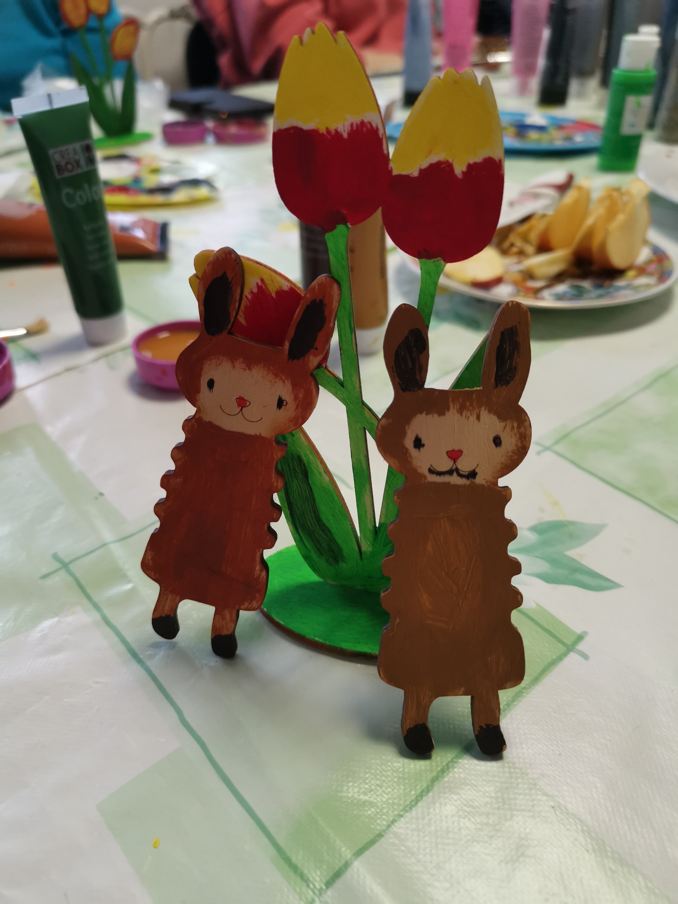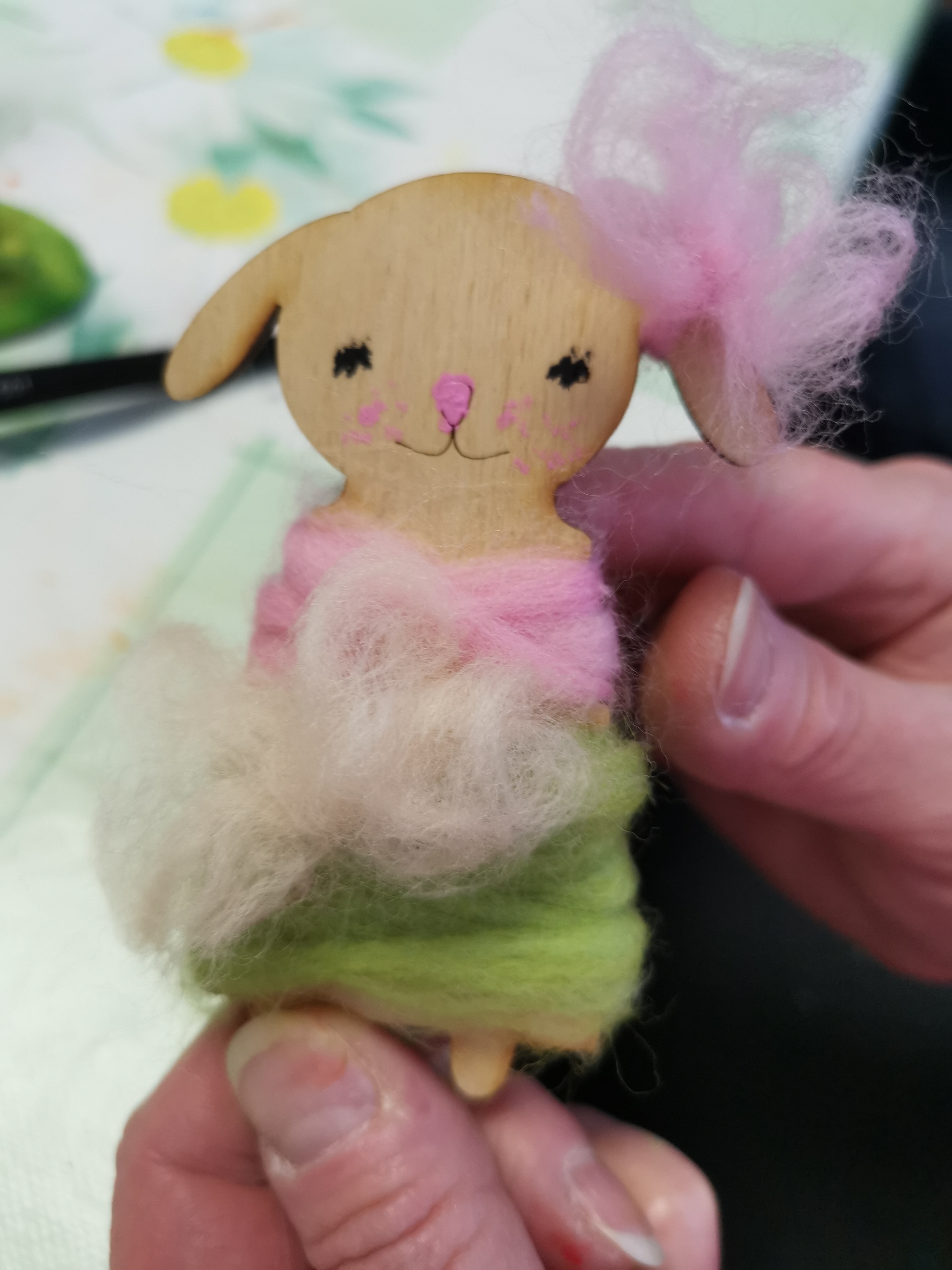 A pro šikulky, kterým šla práce od ruky, jsme měly připravený ještě bonusový kousek. Králíčka nebo ovečku k nazdobení dle libosti. Někto jen maloval a někdo si dal práci s oplétáním a figurku "oblékl" do svetříku.