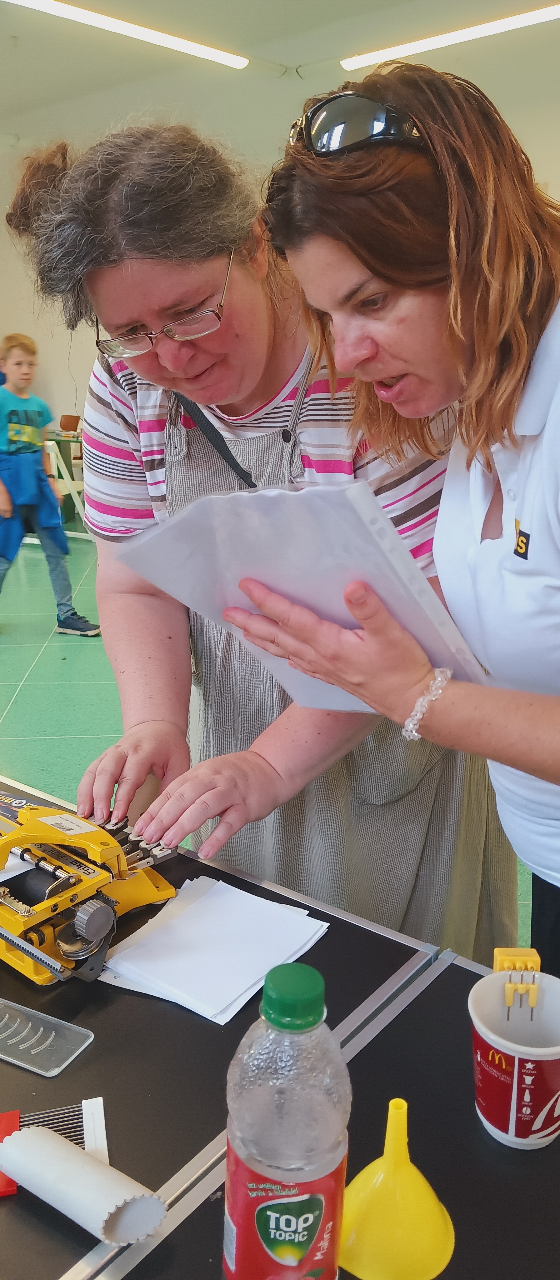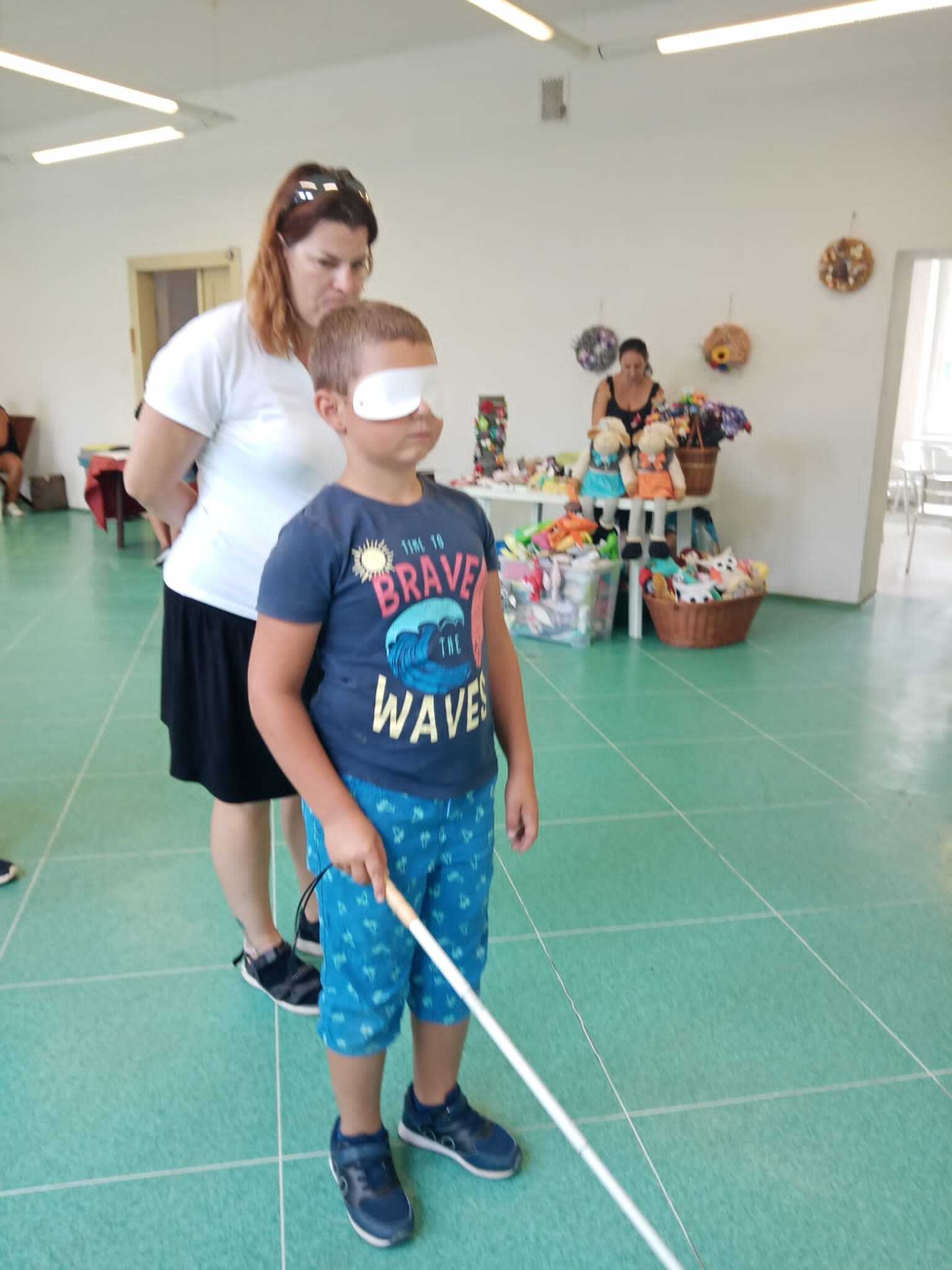 Návštěvníci si vyzkoušeli napsat svoje jméno Braillovým písmem, dále se učili poznávat předměty pomocí hmatu s klapkami na očích a zahráli si zvukové pexeso. Vyzkoušeli si také chůzi s bílou holí, nalévání vody s klapkami na očích. A jako každý rok nechyběla ani zvuková střelba.