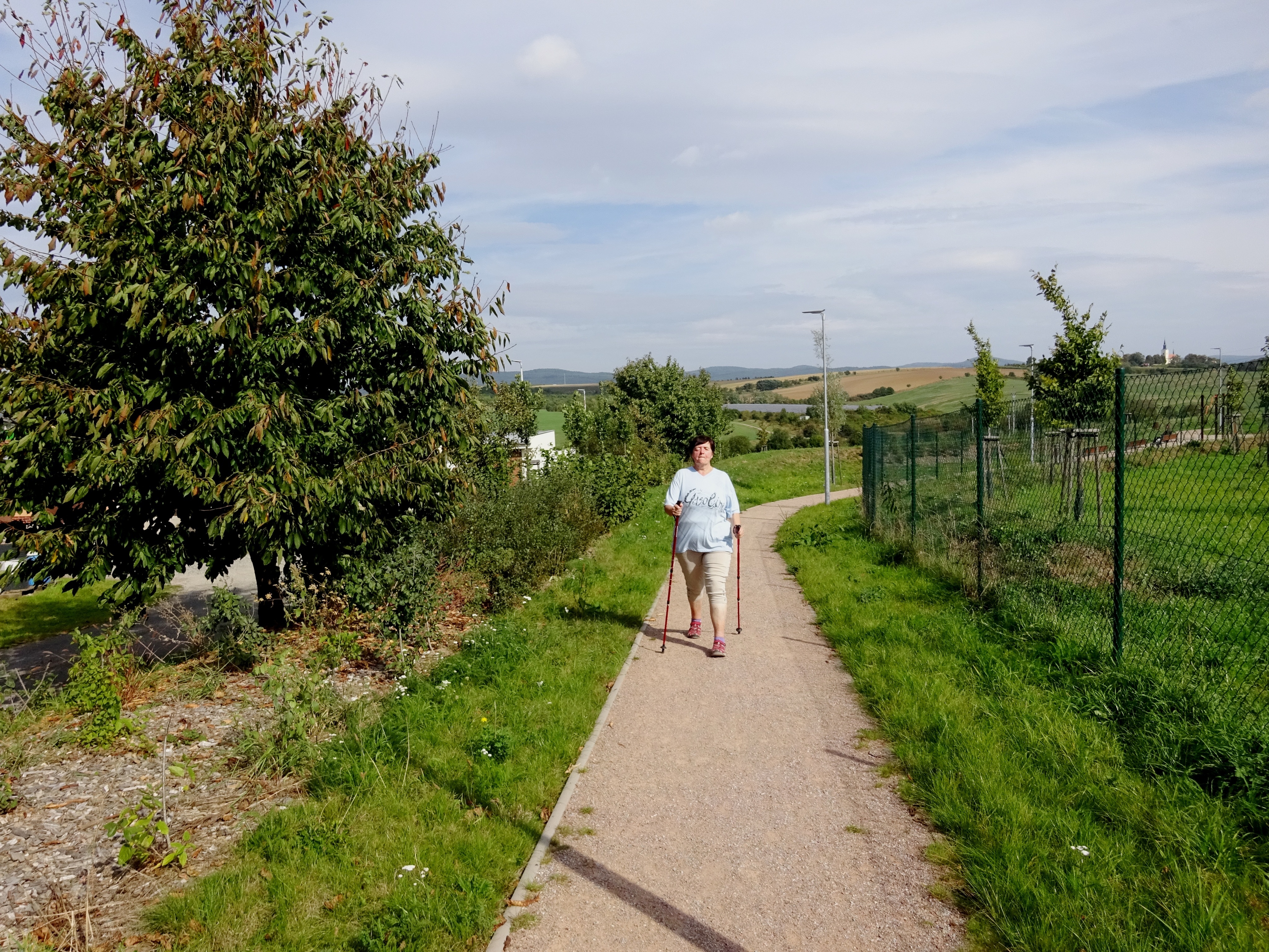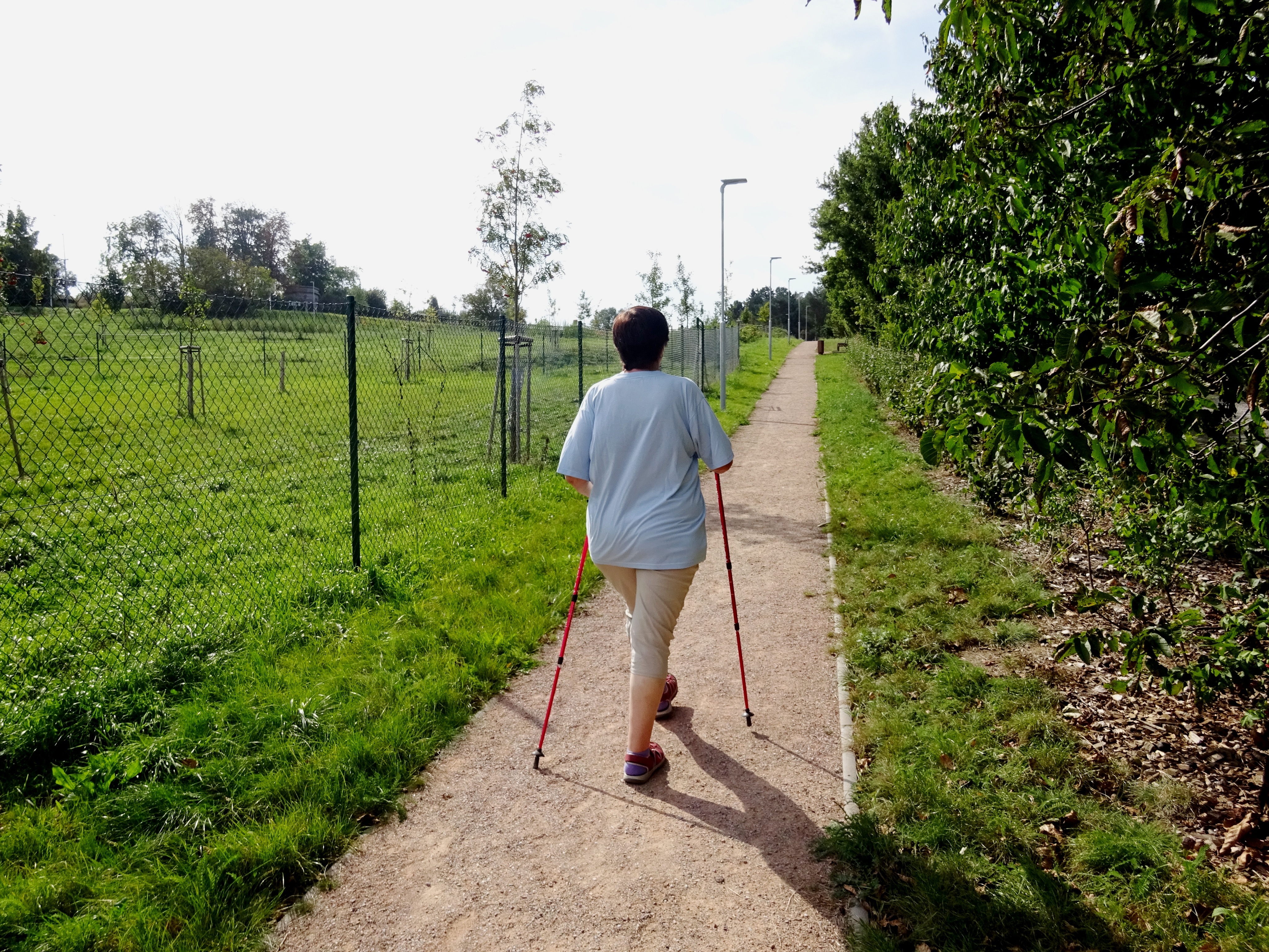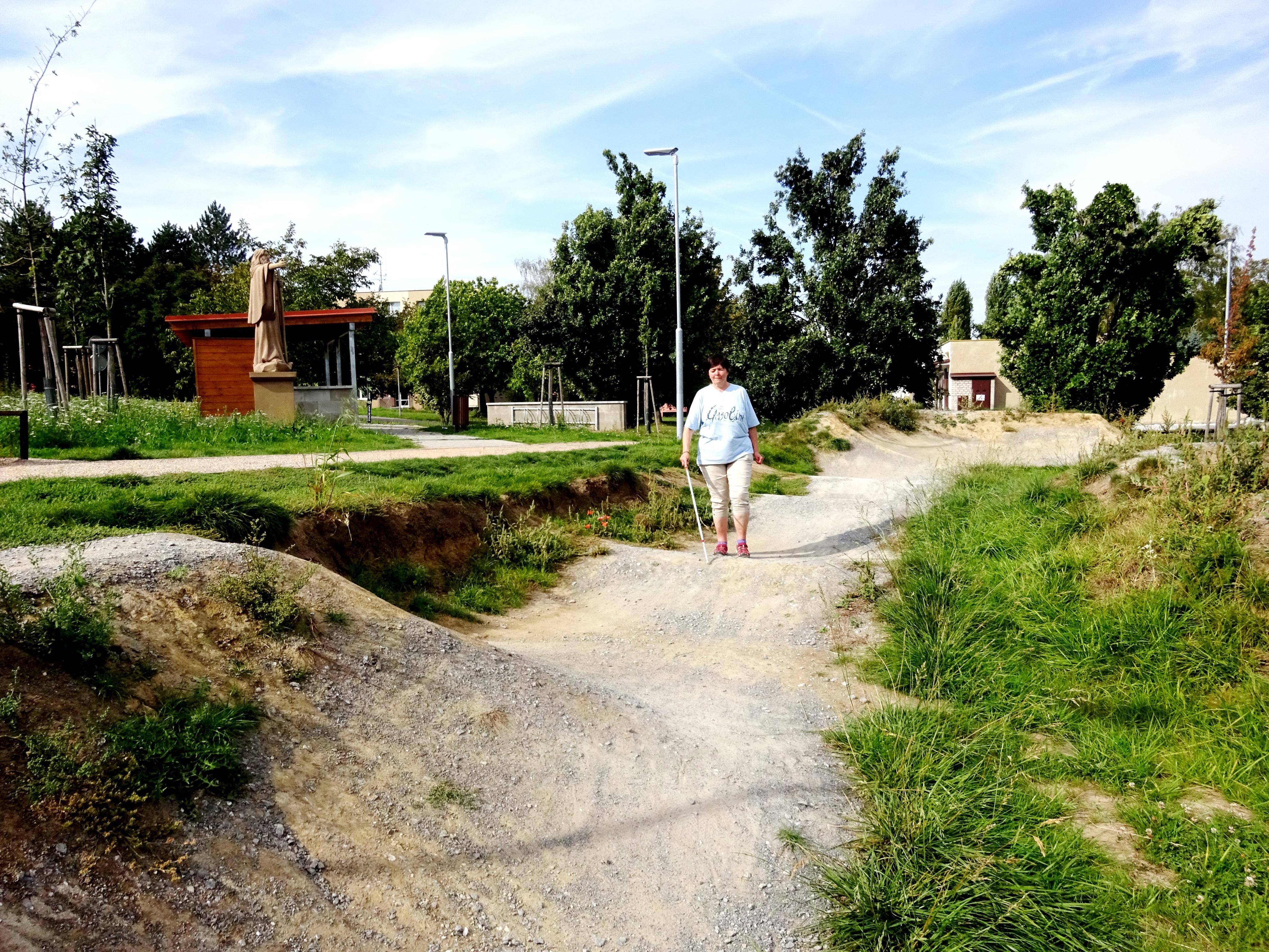 Vycházkový okruh, který tvoří vnější chodník areálu, může i nevidomý člověk s vycházkovými holemi bezpečně projít rychlým tempem, které přizpůsobí svým možnostem. Prostor má vymezen obrubníkem a směr mu udává zvuk chodce před ním. Zrychli tempo, do kopce přidat a už stíráme pot z čela - to byl náš cíl!