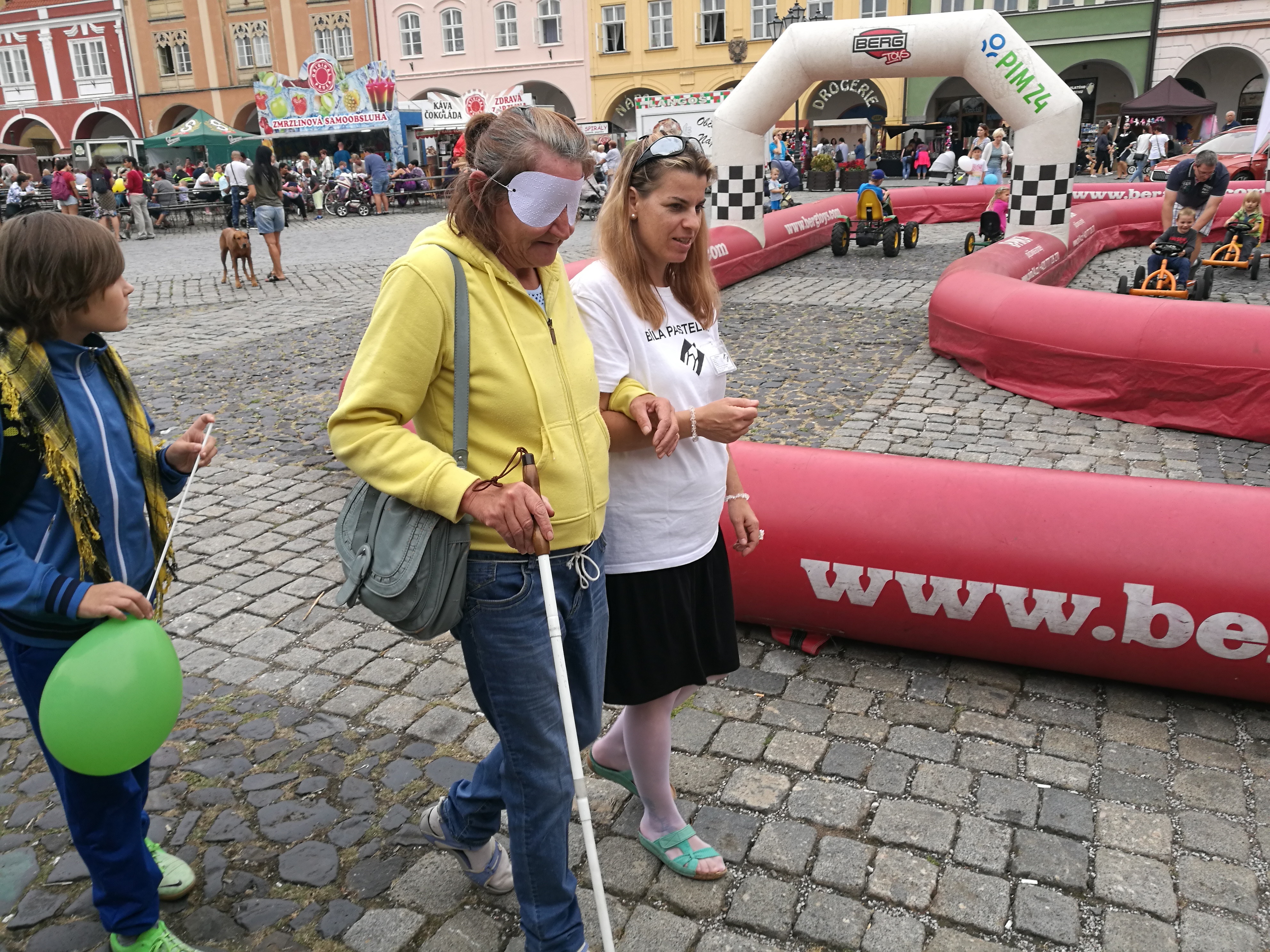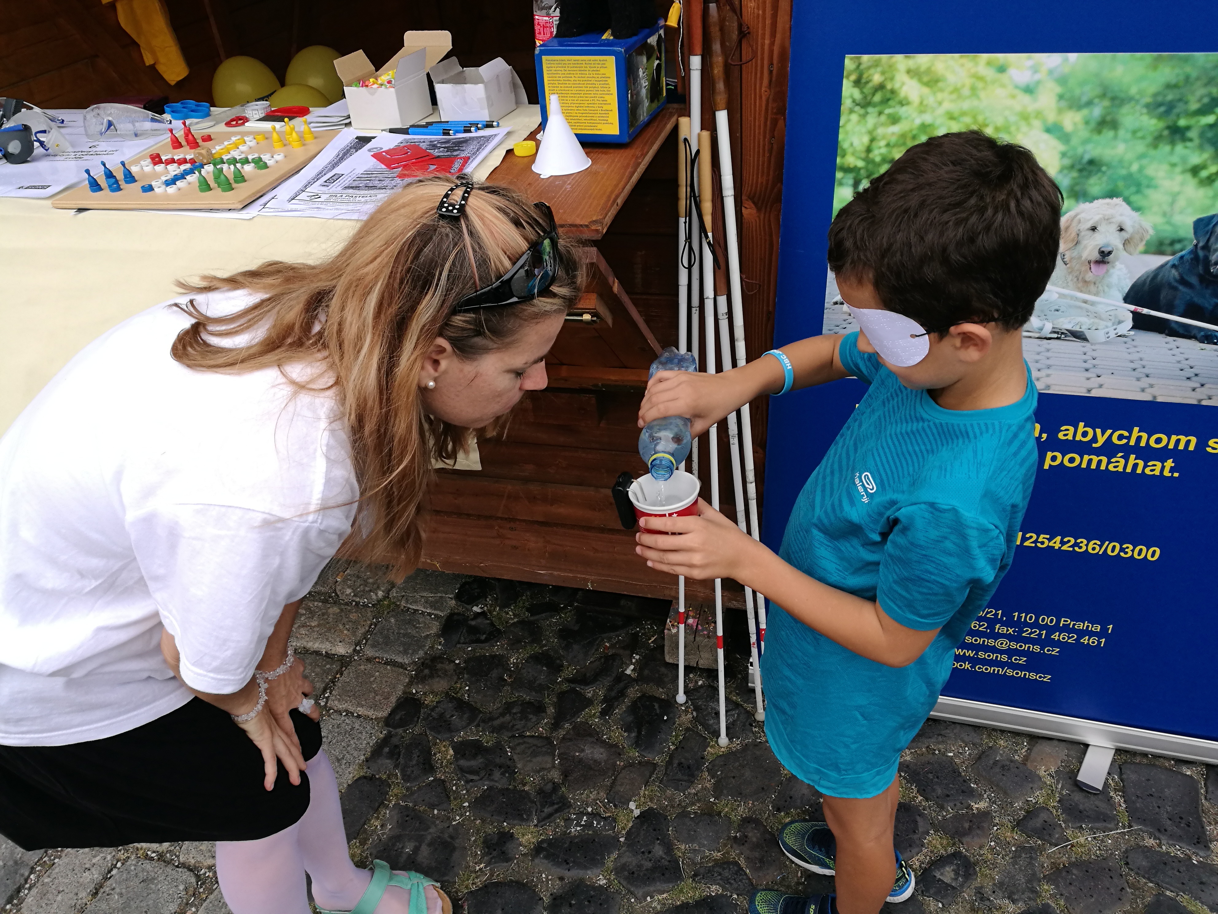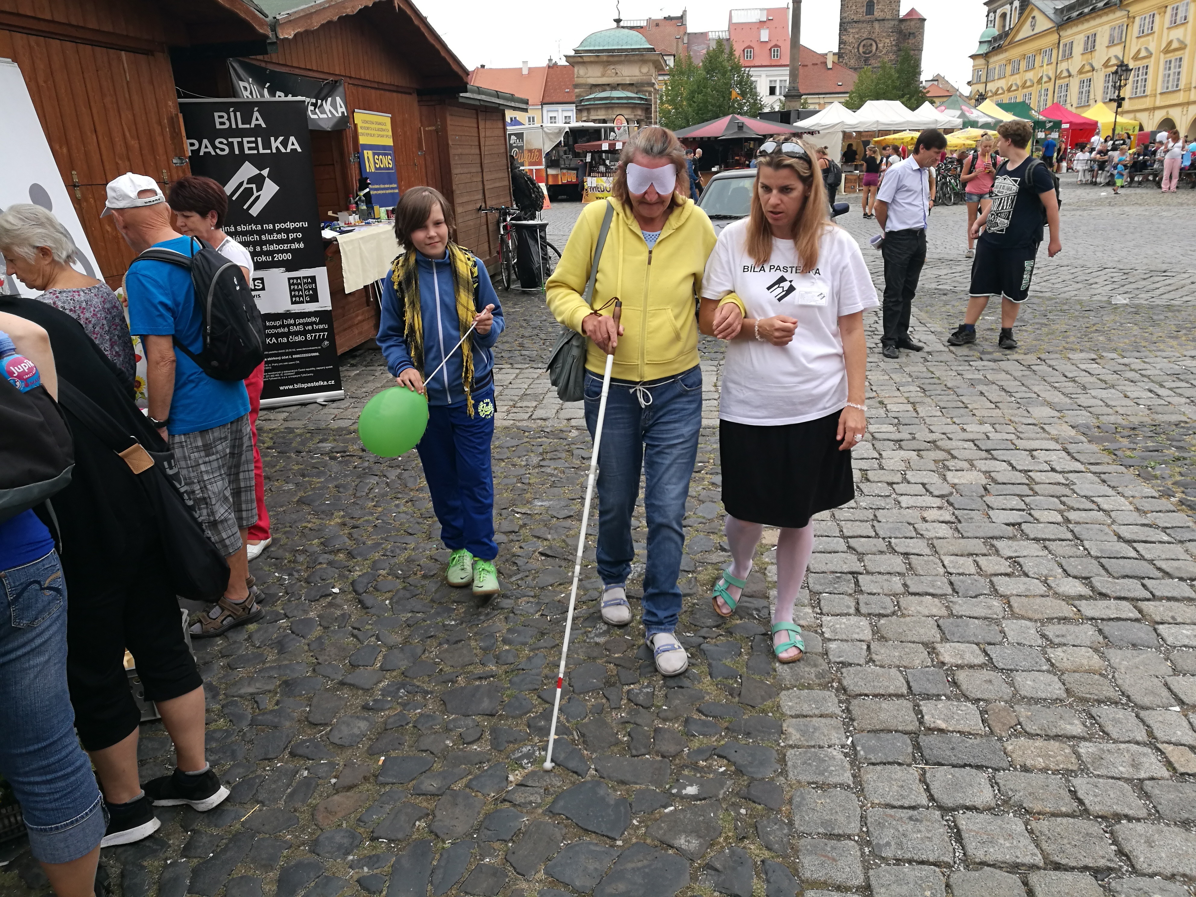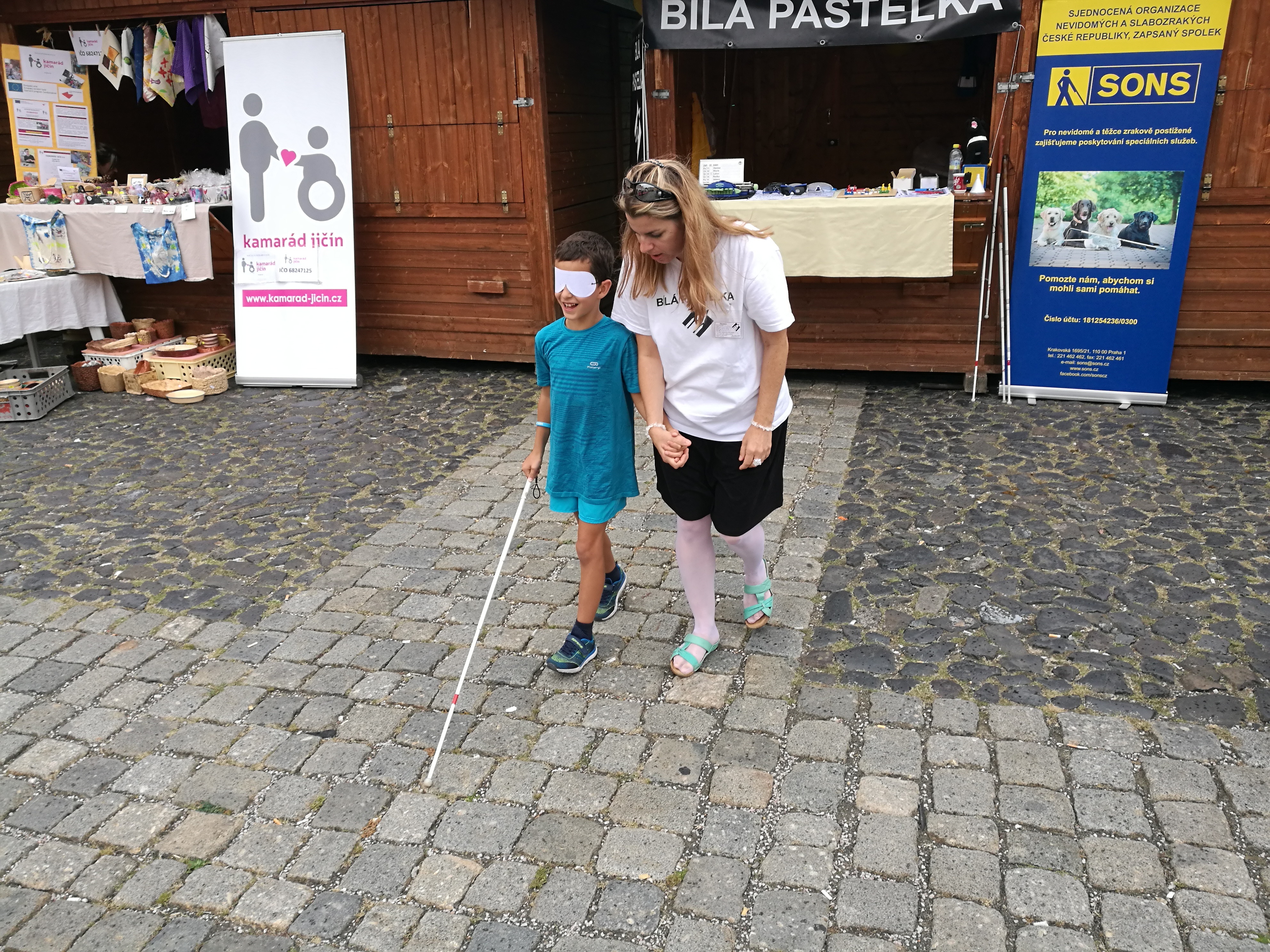 První den 13. 9. 2018 na stánku Sjednocené organizace nevidomých a slabozrakých ČR, z. s., oblastní odbočky Jičín.