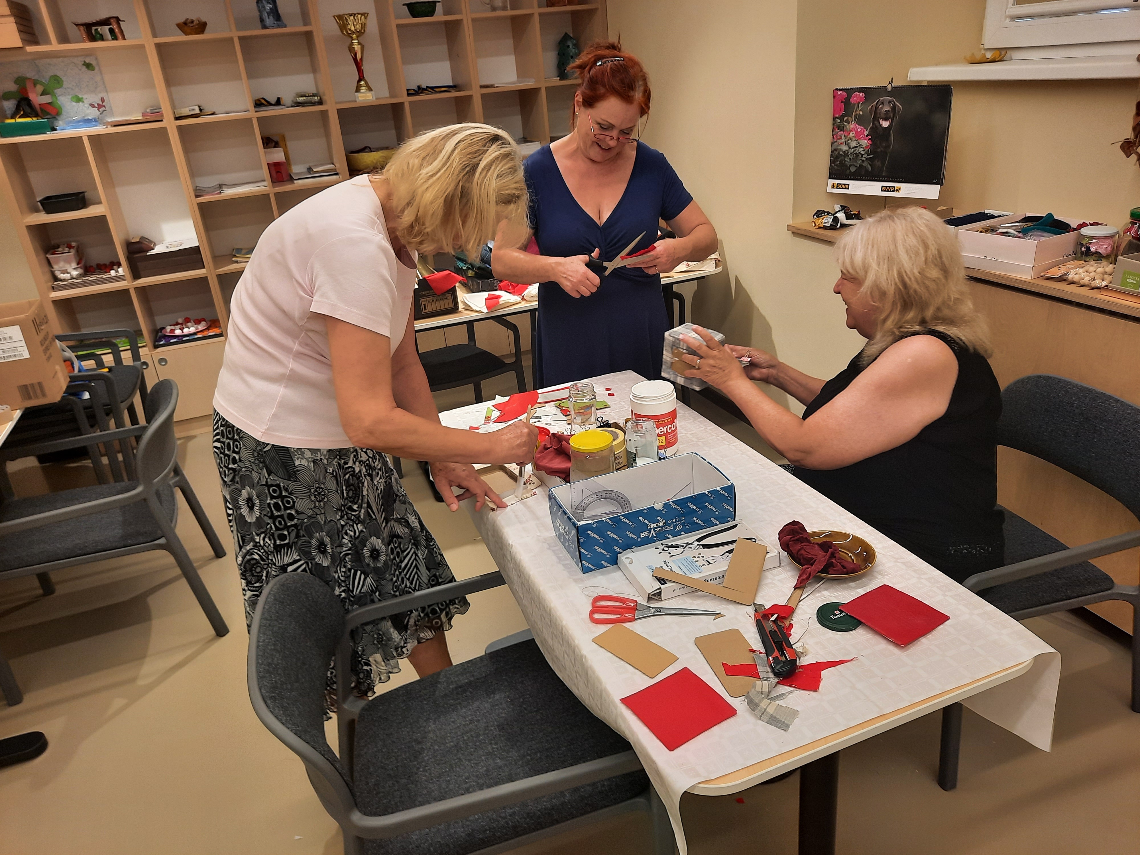 Čtyři tvořivé dámy dnes v KC Vrchlická vytvořily dle svých představ krásné a vkusné "Krabičky na věcičky". Domu si odnesly každá nejen svou krabičku a lepidlo na prstech, ale i spoustu radosti z tvoření.