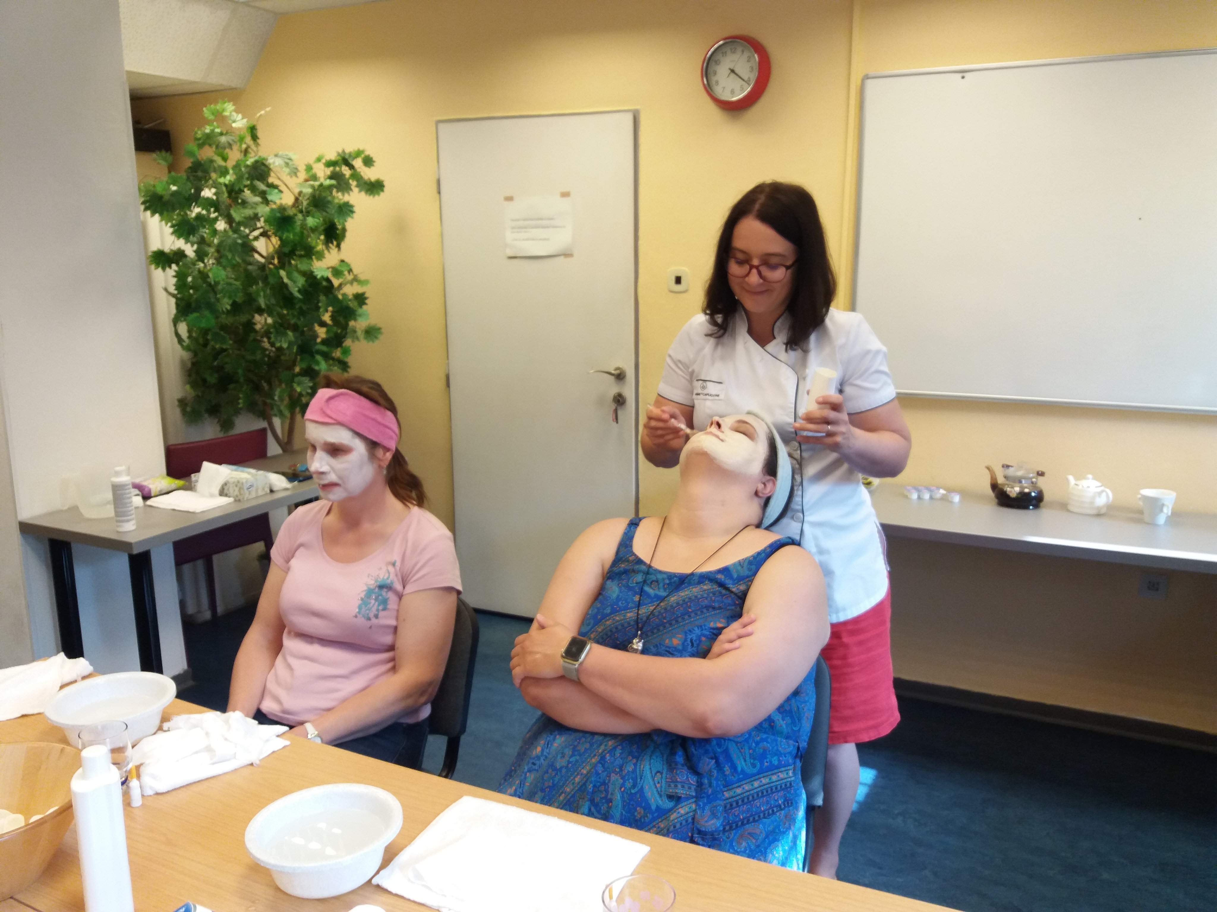 Poradna s kosmetičkou Adélkou proběhla ve středu 17. 6. 2020. Čekalo nás příjemné a čisté prostředí, ve kterém jsme se všichni cítili velice dobře, vychutnávali jsme si péči kosmetičky a vizážistky, zkoušeli si čisticí vody, masky a krémy, které nám doporučila s ohledem na naši pleť. Věnovala se nám příjemná, ochotná a trpělivá kosmetička Adélka s dlouholetou praxí v práci i se zrakově postiženými klienty.