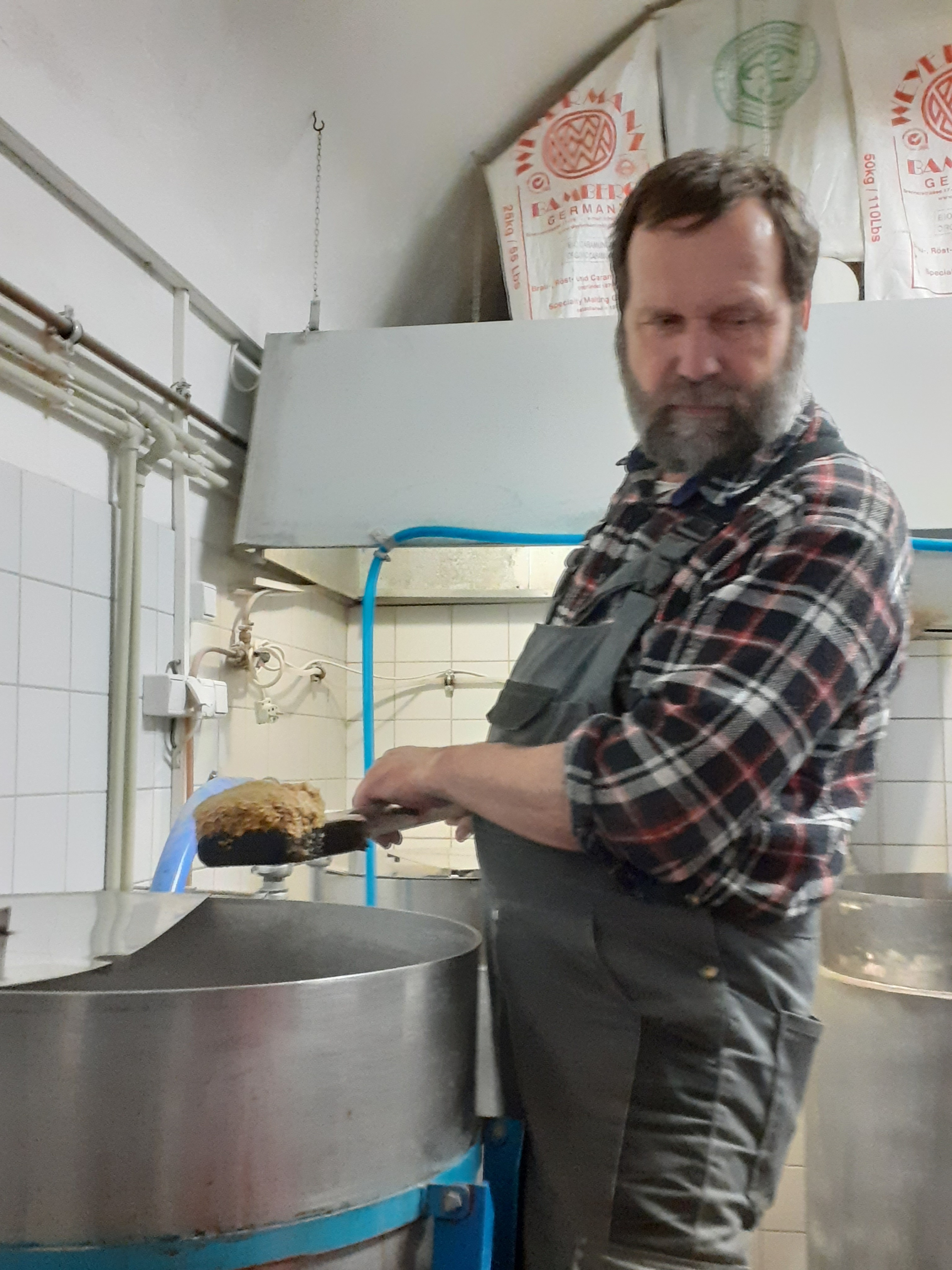 Prostornou a útulnou hospůdkou vcházíme do výrobních prostor místního pivovaru. Vítá nás příjemná vůně právě vařeného piva a mistr sládek pan Stanislav Orel. Velmi poutavě nám vysvětluje postup výroby piva, zodpovídá zvídavé dotazy a při opakovaném naplnění nádoby odpouští přefiltrovanou sladinu. V průběhu povídání máme možnost ochutnat právě oddělené horké mláto, chmelové granule a pražený ječmen. Musím konstatovat, že jde o naprosto jedinečné gurmánské zážitky. Stačí rozkousnout opravdu malinký kousíček granulovaného chmele a v ústech cítíte lahodnou hořkost. Zvědavě nahlížíme do spilky, kde se k mladině přidávají pivovarské kvasnice a dochází ke kvašení piva. Procházíme do další místnosti, do sklepa, ve kterém zraje pivo v bečkách. Jelikož je tady pěkná zima, rádi se vracíme do vyhřáté místnosti k vaření piva. Poděkování a potlesk sládkovi za jeho čas a chuť se nám věnovat. Dnešní exkurzi nebylo možné završit jinak, než ochutnávkou všech tří druhů piva na čepu. Jedenáctku reprezentuje Muzikant, dvanáctku Julius a třináctku Eliška. Pivo si vychutnáváme na venkovní zahrádce a přichází si s námi připít i pan sládek. Děkujeme za výtečné pivo, které má opravdu říz!