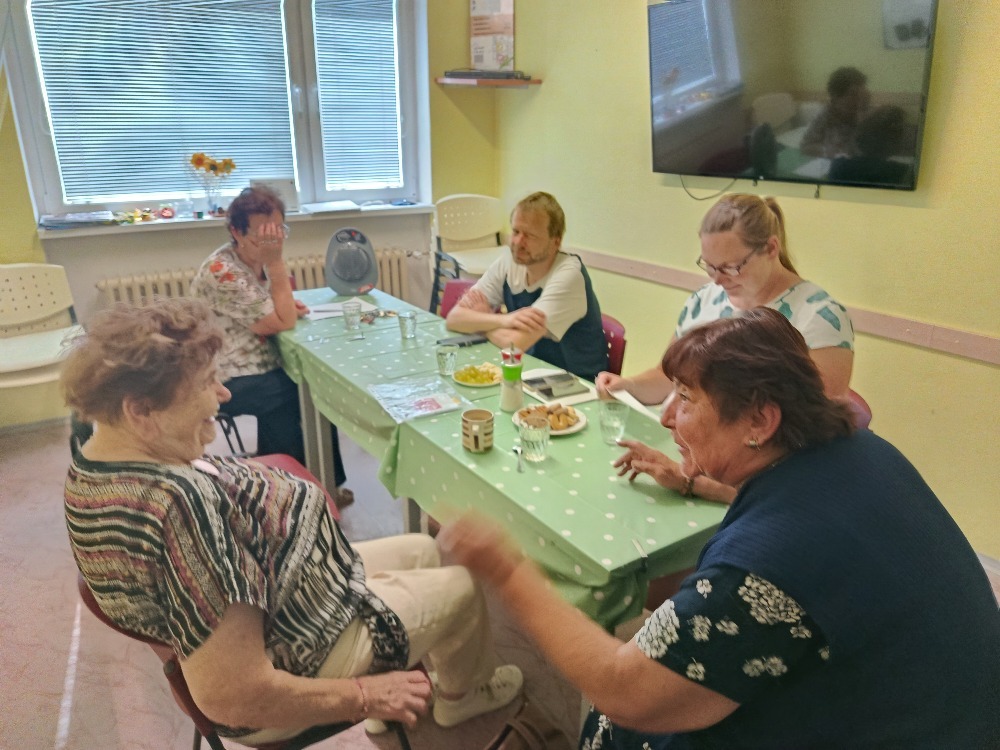 Ve čtvrtek 14. srpna dopoledne jsme se sešli k příjemnému posezení v naší klubovně. Popovídali jsme si o všem možném ze života a také jsme se zasmáli nejrůznějším historkám, co kdo zažil. V neposlední řadě jsme se zasmáli i vtipům. Bylo to příjemně strávené dopoledne. Venku panovaly vysoké letní teploty, i proto nám v zastíněných prostorách naší klubovny bylo fajn.