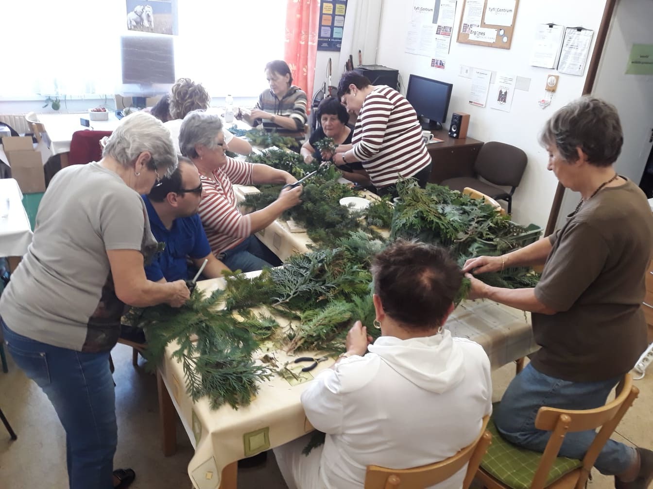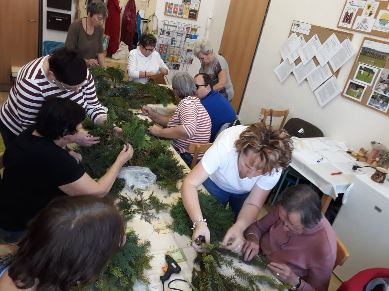 Výtvarného nebo spíše rukodělného kroužku se zúčastňují během roku převážně stálí zájemci a vyrábí předměty z proutí, drátků, korálků a papíru. Nejvíce je ale kroužek navštěvovaný v říjnu, kdy vyrábíme podzimní dekorace z přírodních materiálů. Hotové věnce si účastníci kroužku odnášejí převážně na hroby v době „dušiček.“ Jsme rádi, že se každý rok zapojuje do sběru přírodnin a výroby dekorací čím dál více osob.