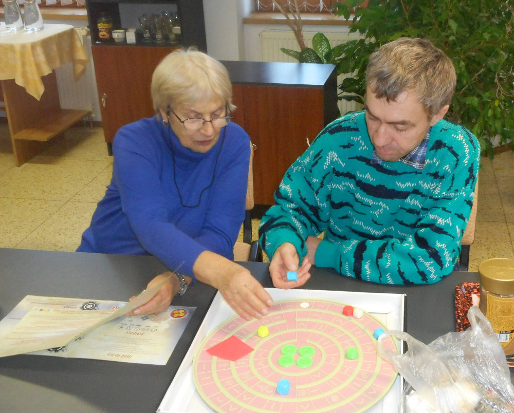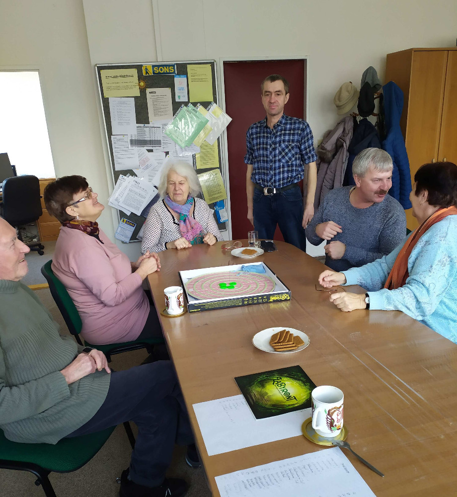 Účastníci klubového setkání si vyzkoušeli deskovou hru pro nevidomé – LABYRONT.