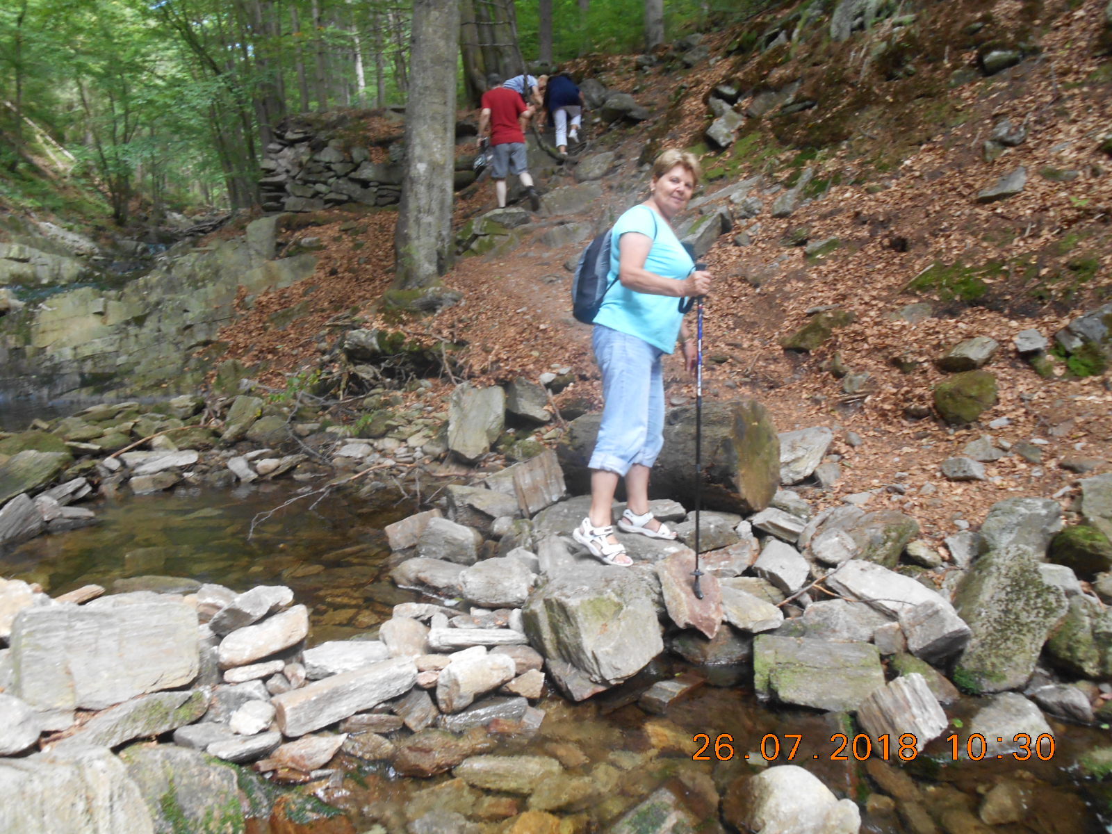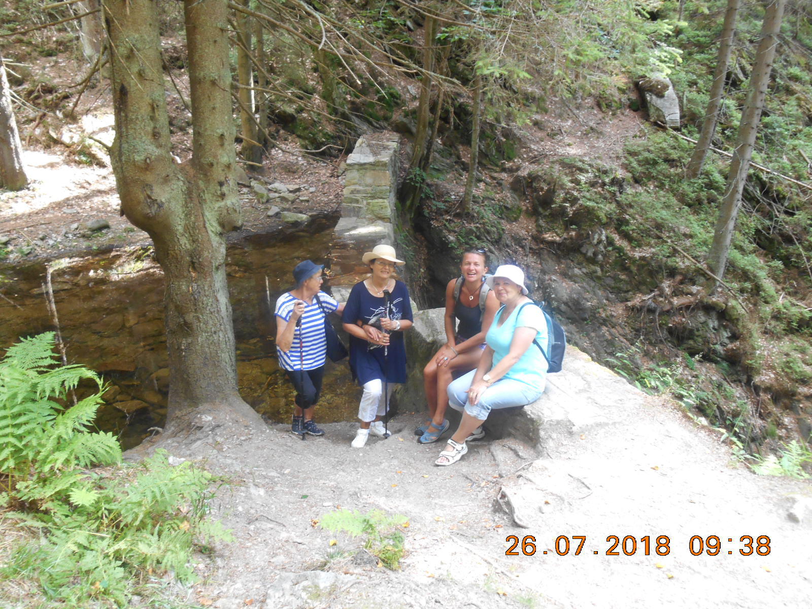Letní osvěžení v Klausově dole. Na konci července jsme se vydali do jednoho ze stinných míst v Krkonoších. Východní část Krkonoš nad Janskými Lázněmi třímá tajuplně krásné místo - romantickou rokli mezi Černou a Světlou horou zvanou Klausový neboli Těsný důl. Klausovým dolem stoupá cca 0,5 km dlouhý před pár lety rekonstruovaný turistický chodník podél divokých kaskád Černohorského potoka, který je napájen z největšího rašeliniště v Krkonoších – Černohorského rašeliniště. Dále už je terén těžko přístupný. Ale současná vedra se podepsali i na této krajině, takže jindy zurčící potok se proměnil v slabý potůček, který nás na naší cestě ochladil, ale žádné žiletky to nebyly. Příští návštěva Janských Lázních bude kulturní. Čeká nás koncert Vokal klubu SONS na kolonádě. Již teď se těšíme.