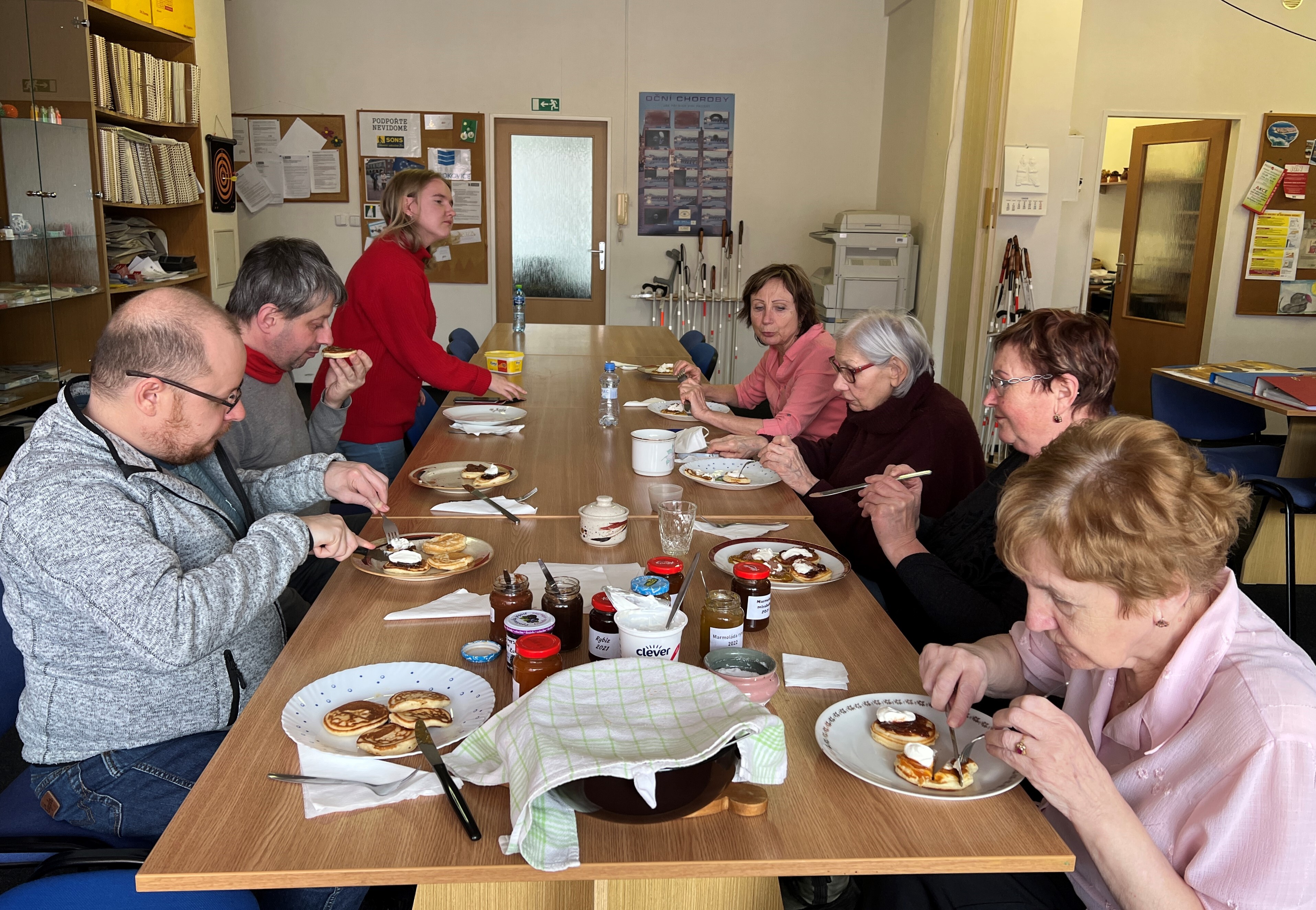 Dne 7. 3. jsme se u nás na odbočce opět sešli při oblíbeném klubu vaření. Společně jsme si uvařili polévku z červené čočky a usmažili kefírové lívance. Na lívance jsme pak mazali domácí marmelády od naší členky - rynglovou, pomerančovou, meruňkovou, mirabelkovou, rybízovou a třešňovo čokoládovu.