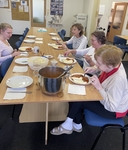 Při vaření jsme si v rámci zlepšování sebeobsluhy procvičili odměřování potravin, bezpečné zacházení s ostrými kuchyňskými nástroji - nožem, škrabkou a struhadlem, a také bezpečnost při pečení v troubě servírování a stolování.