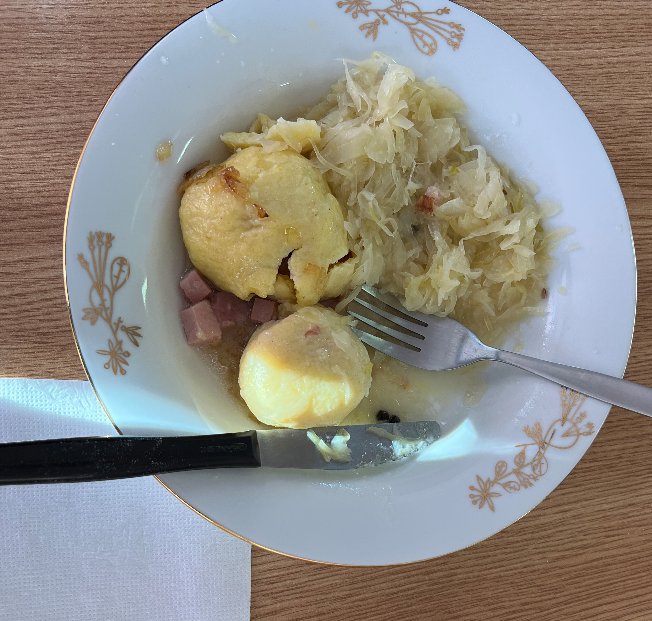 Klub vaření u nás na odbočce - Bramborové knedlíky plněné uzeným masem s kysaným zelím