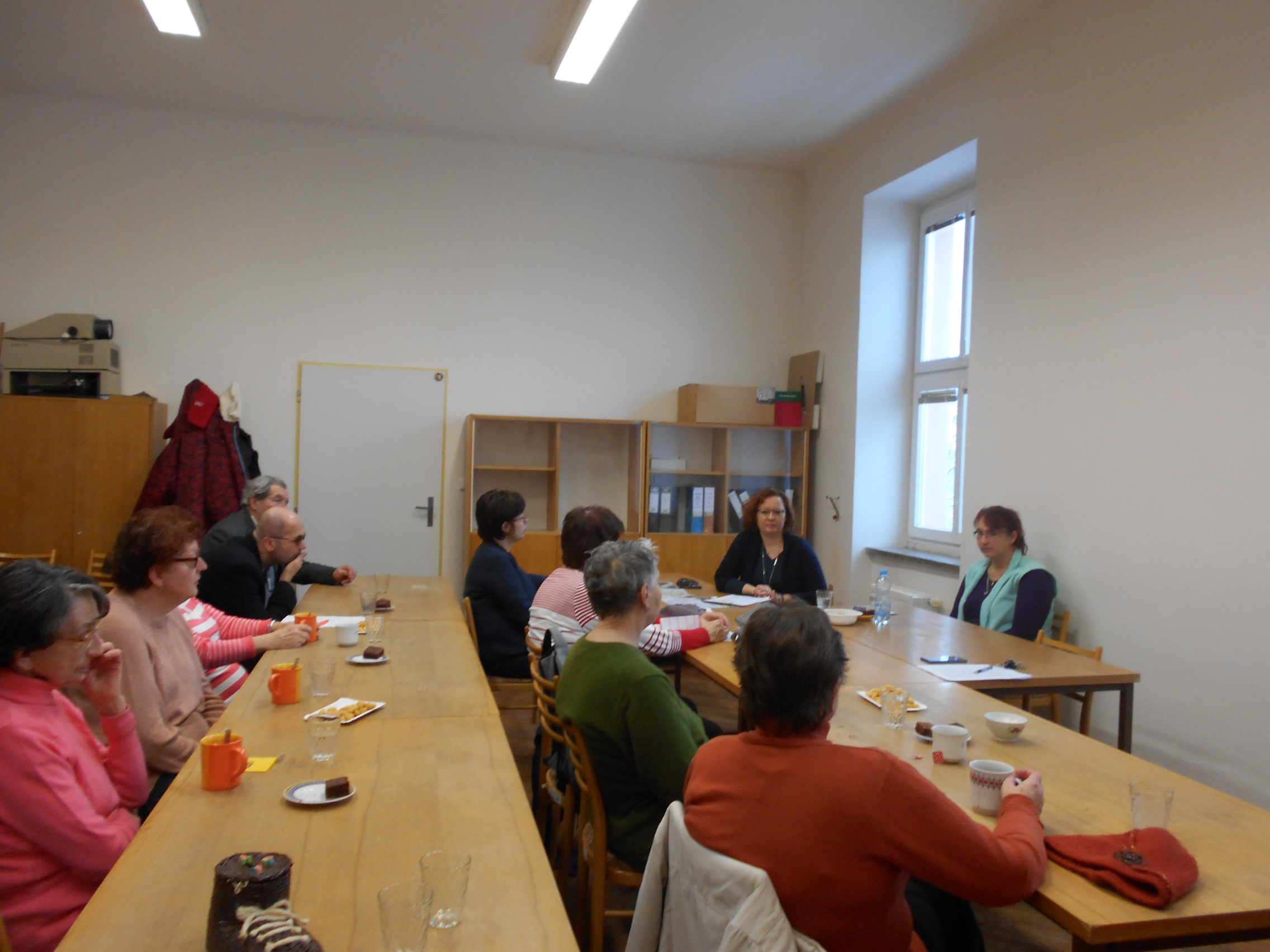 Dámy nás seznámily s historií a provozováním služeb osobní asistence, které poskytují, s individuálním přístupem ke každému klientovi, seniorům a osobám se zdravotním postižením od čtyř let věku na Kroměřížsku a v mikroregionech Koryčansko, Zdounecko a Morkovsko. Pozvaly nás také k výletům, které pořádají pro své klienty v rámci akce „Prázdniny na kolečkách“, a nabídly spolupráci a pomoc s doprovodem našich členů a klientů při akcích odbočky.
